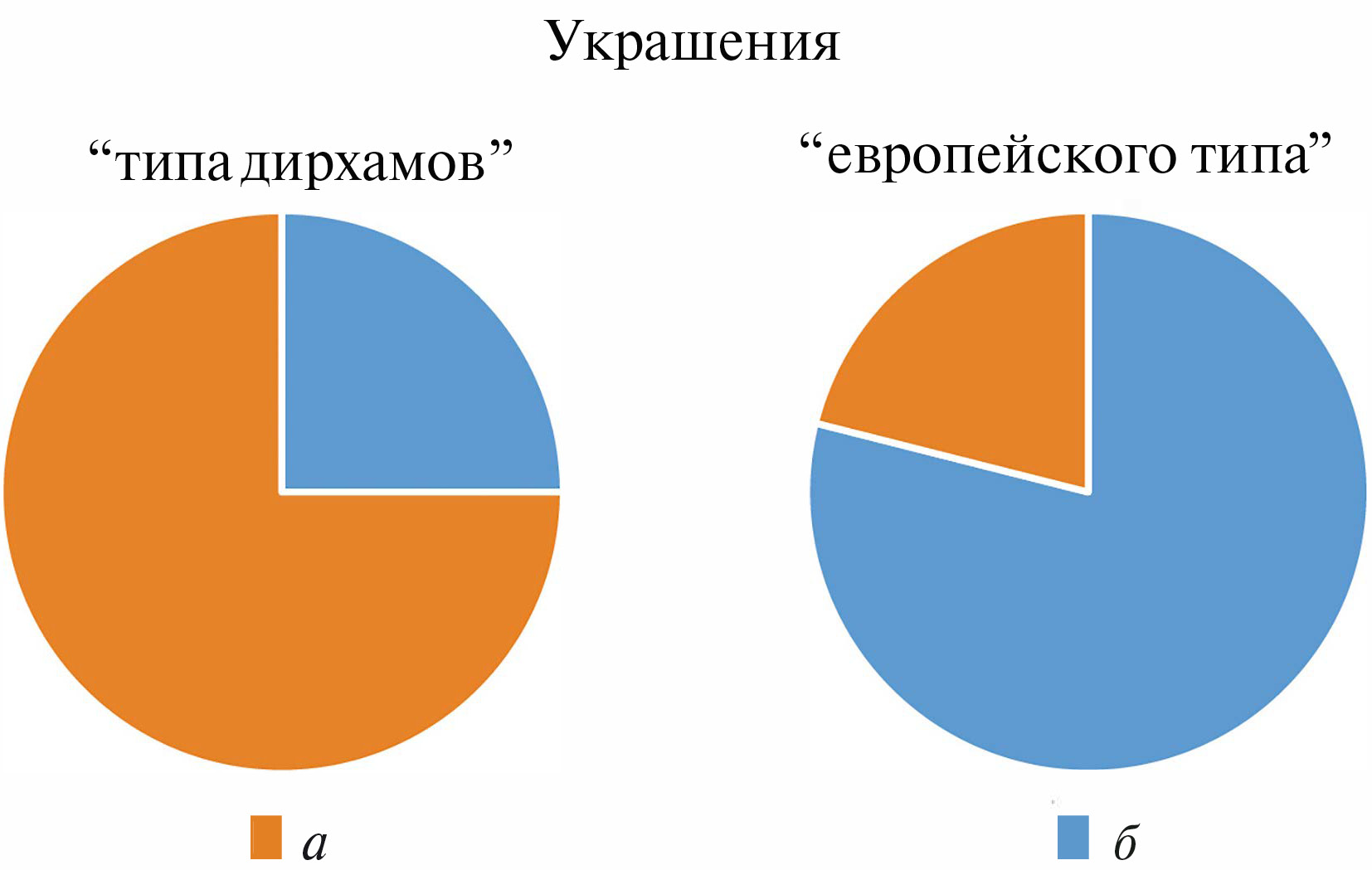 9. Fig. 8. Groups of silver jewellery (Opolye and Murom), with bismuth in the metal (a) and without it (б)