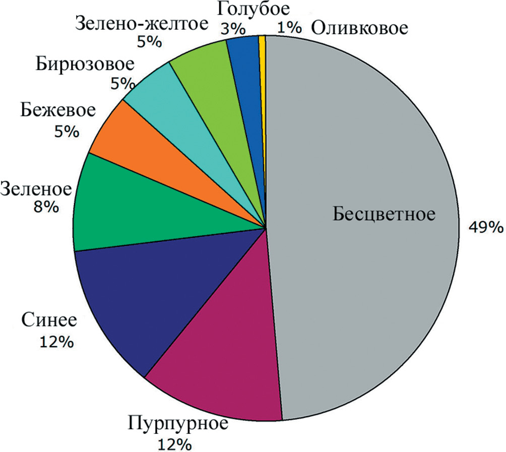 Рис. 8. Соотношение цвета фрагментов стеклянных оконных дисков из раскопок храма у с. Веселое.