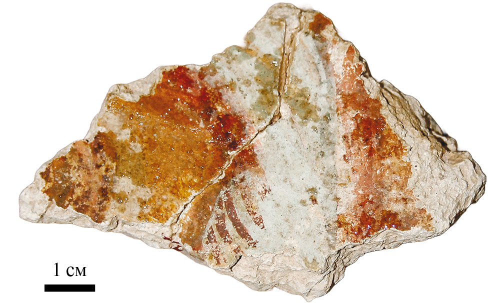 Они переданы в НГОМЗ, в мастерскую Новгородского кремля под руководством Т.А. Ромашкевич, где уже прошли расчистку и укрепление. В основном это массовый археологический материал, главным образом фоны. Мелкие фигуративные изображения, в том числе личного письма, а также орнаменты встречаются нечасто, их всего чуть больше десятка. Важно отметить, что благодаря консервации под полами 1184 г. на них не зафиксировано позднейших записей. К этим немногочисленным фресковым фрагментам, найденным в 2021–2023 гг., мы и обратимся (без указания точного места находки, это прерогатива археологов).