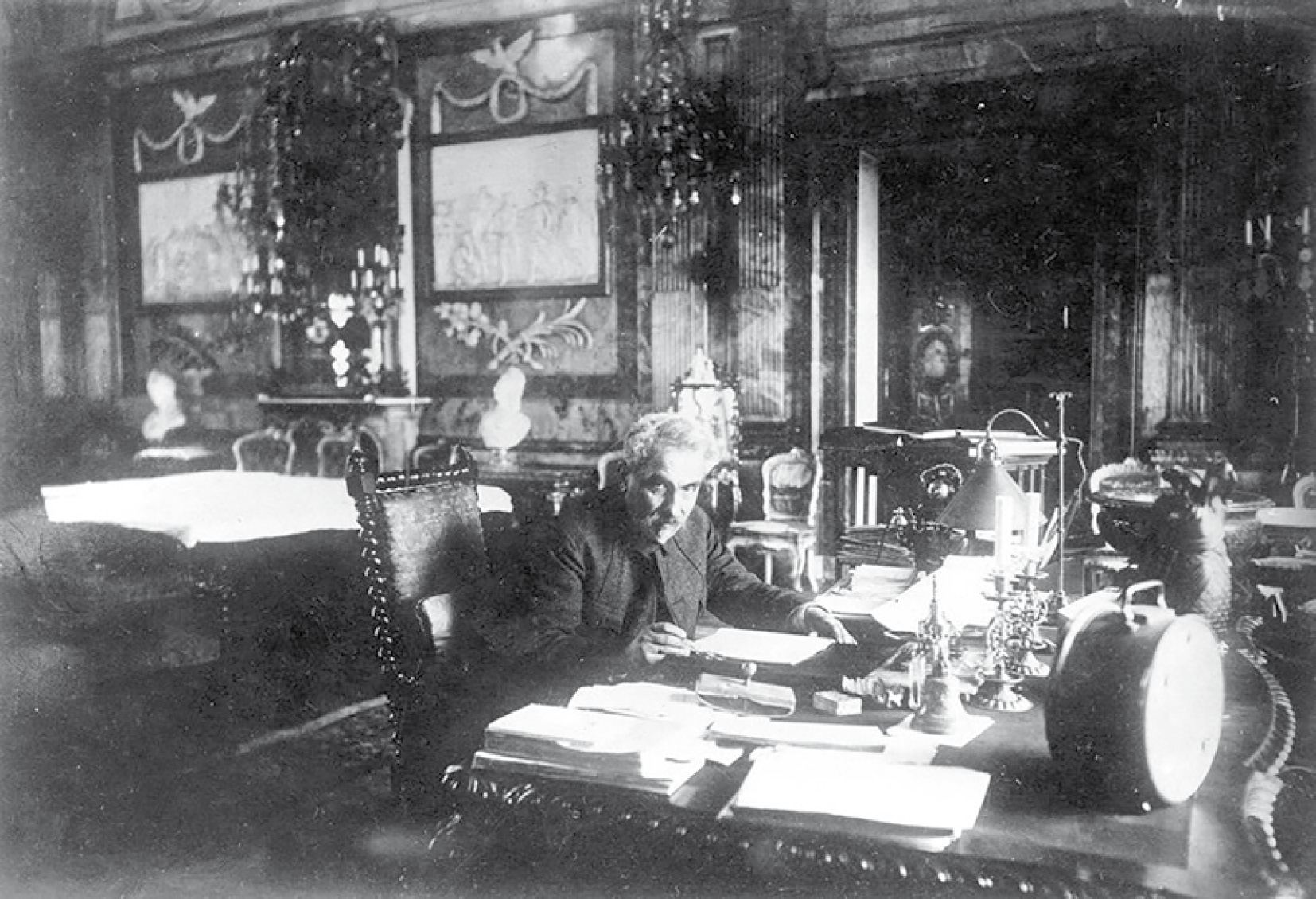 Рис. 1. Николай Яковлевич Марр в своем кабинете, ГАИМК (Мраморный дворец, 1925 г.). Фотоархив НА ИИМК РАН. О. 1067-42.