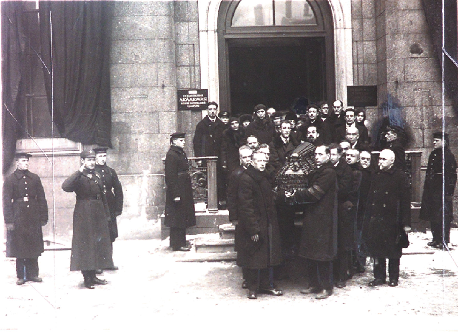 Fig. 6. Carrying out the coffin with the body of N.Ya. Marr. Marble Palace, 1934. St. Petersburg Branch of the Russian Academy of Sciences. F. 800. L. 3. Case 294. P. 130