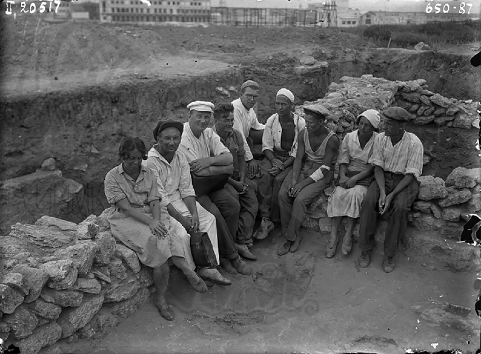 Fig. 7. Kerch expedition of GAIMK, 1935, Kamysh-Burun (Tyritake). A group of researchers and trainees. From right to left: V.A. Lavrov, L.F. Silantyeva, V.P. Lisin, O.P. Kalistov, V.Ya. Shvarts, S.F. Strzheletsky, O.O. Kryuger, L.M. Slavin, A.P. Ivanova. Photo archive of the Institute for the History of Material Culture RAS. II.20517
