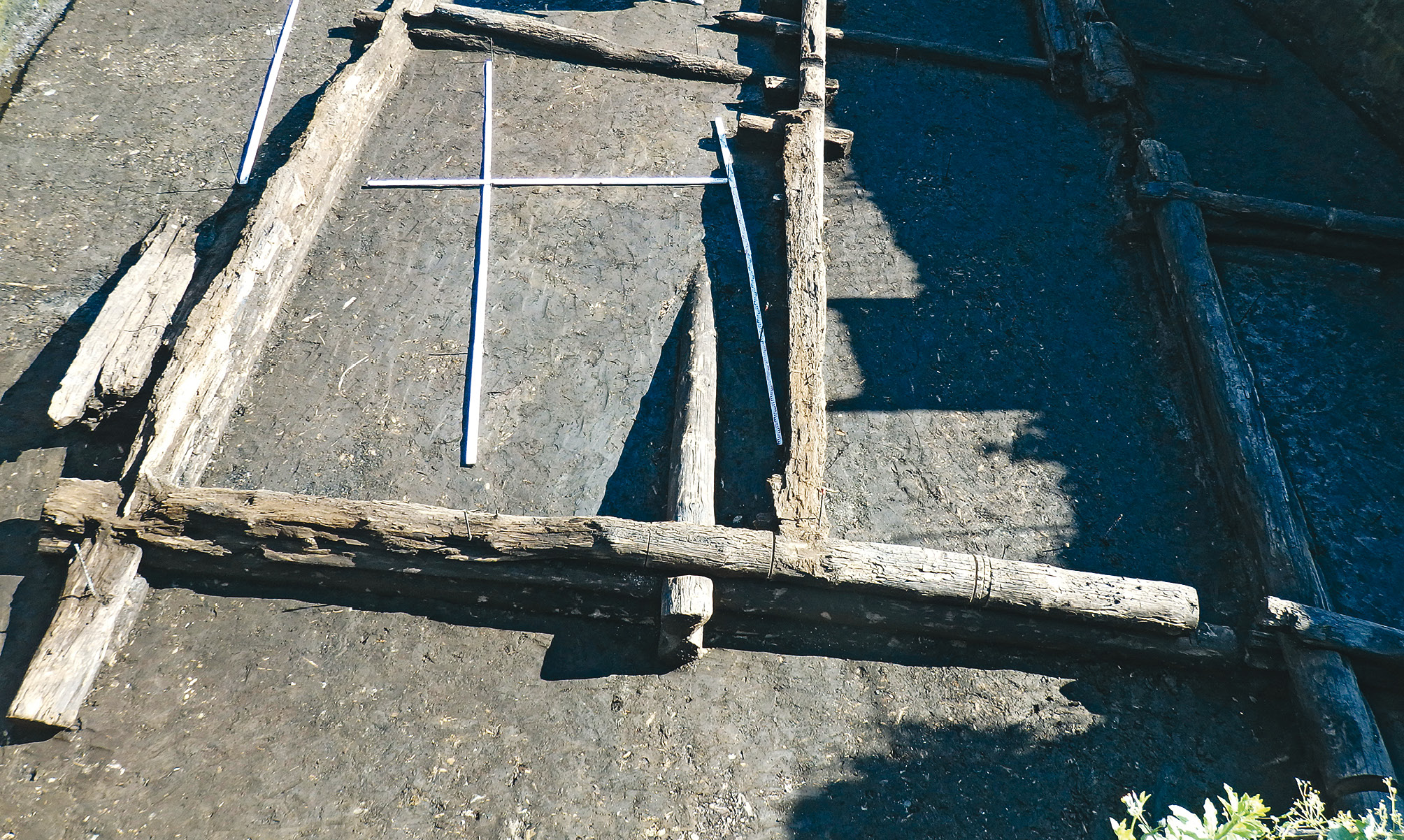 Fig. 2. Excavation site in Borkova Street. Section 3, clearing level − 610 cm. The filling of log framework with visually distinguishable cherry pits