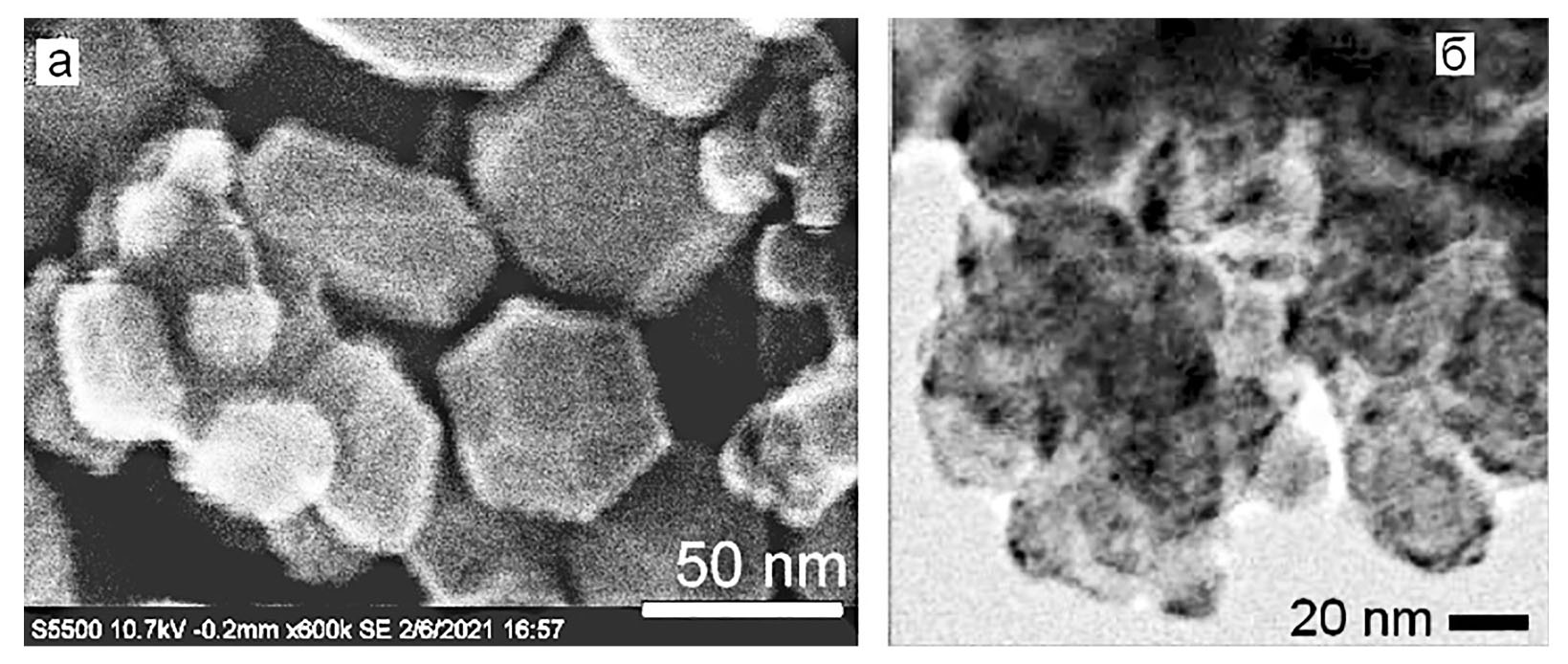 Рис. 6. ЭСМ (а) и ПЭМ (б) изображения образца 2