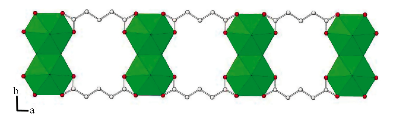 Рис. 3. Глутаратные цепи уранила в структуре [UO2F(C5O4H6)] вдоль [100] направления [6]