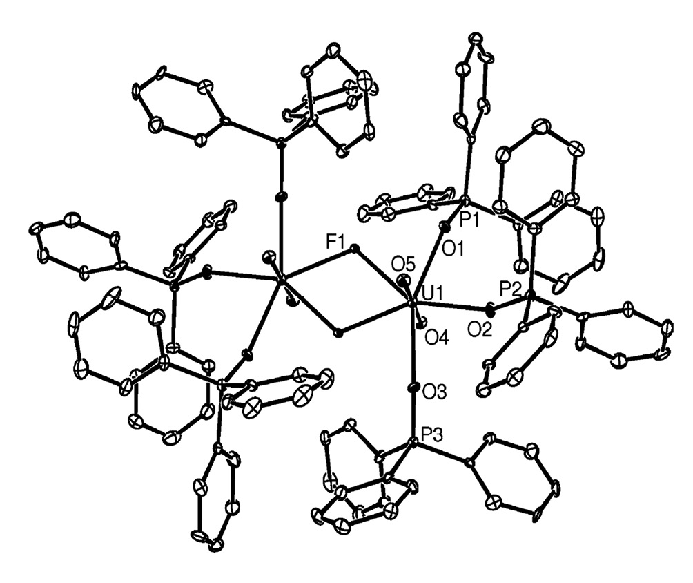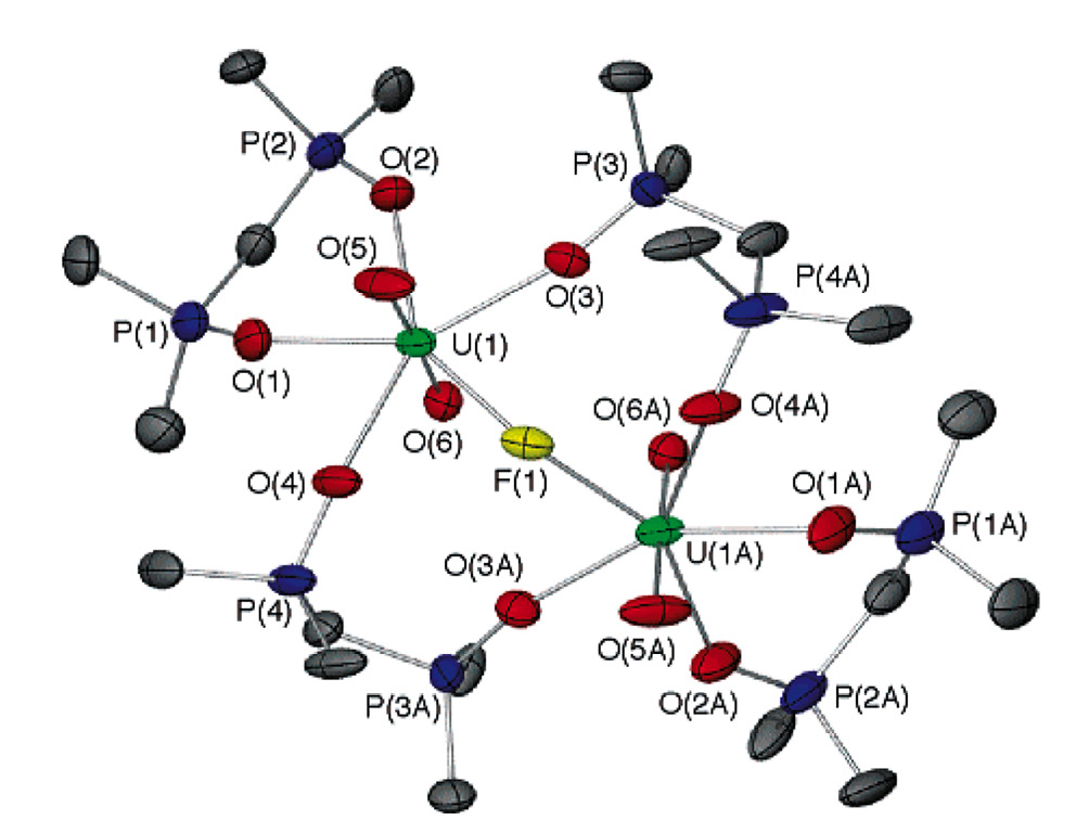 Соединение [(UO2(dppmo)2)2(µ-F)][BF4]3 является вторым известным структурно исследованным димерным фторидным комплексным соединением уранила (наряду с K5(UO2)2F9), в котором пентагонально-бипирамидальные группы объединены в димер одиночной фторидной мостиковой связью U–F–U.