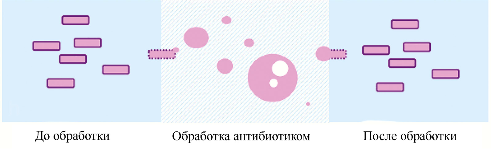 Рис. 2. Модель, показывающая переключение бактерии с клеточной стенки на L-форму [28]
