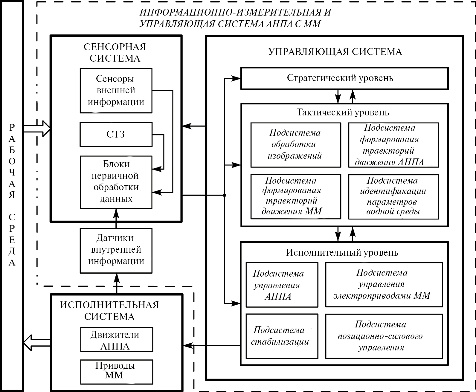 Рис. 2. Обобщенная структурная схема предлагаемой ИИУС АНПА с ММ