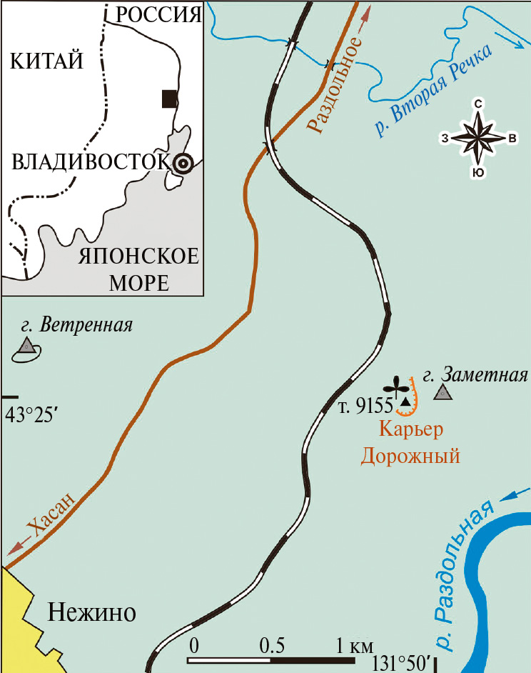 Рис. 1. Местоположение карьера Дорожный, т. 9155