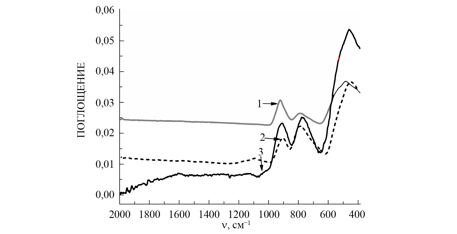 Рис. 3. ИК спектры стекол: 1 – 30MnNbOF5-50BaF2-20InF3; 2 – 30CdNbOF5-50BaF2-20InF; 3 – 30ZnNbOF5-50BaF2-20InF3