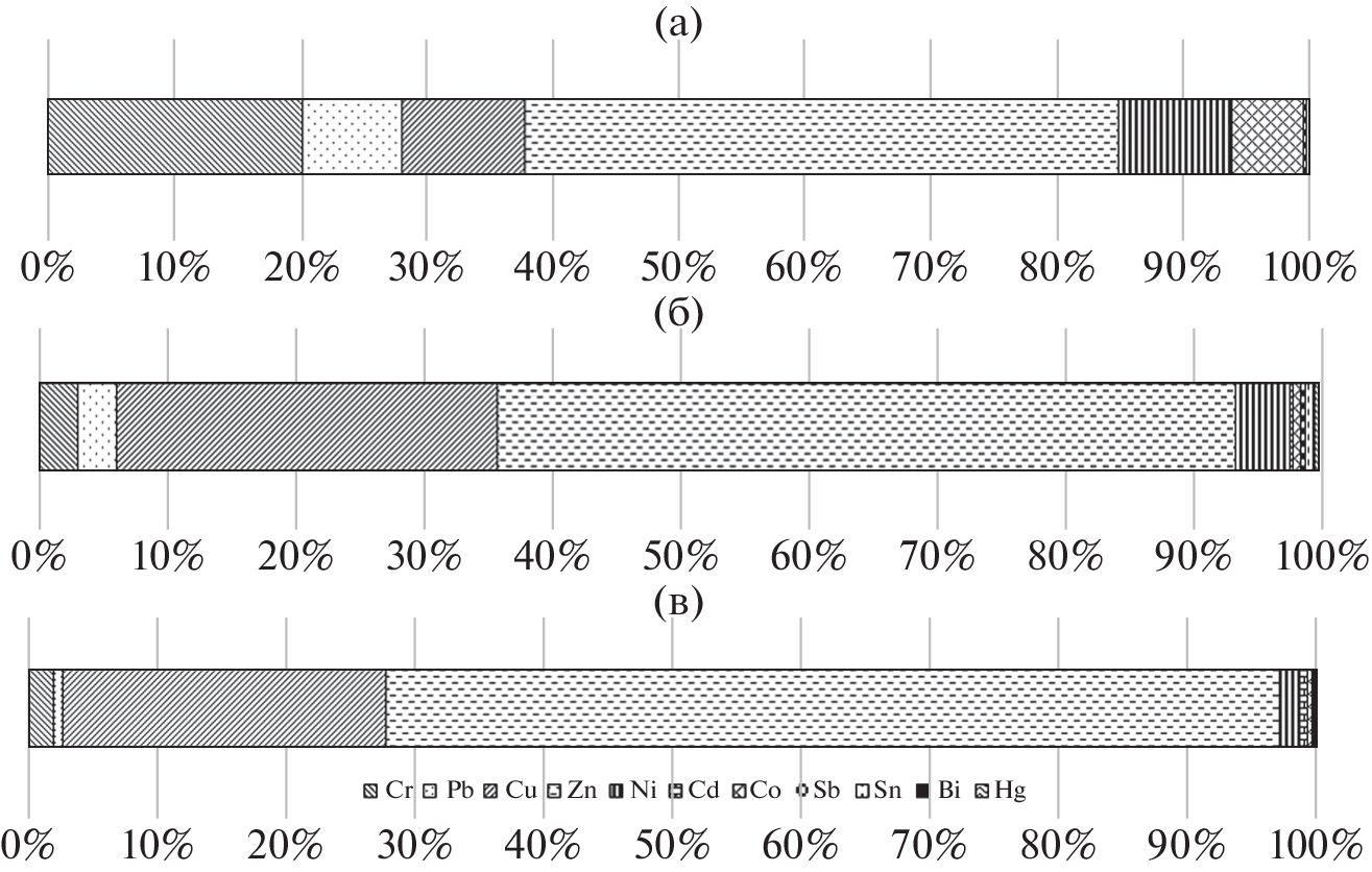 The impact of waste dumps on environmental components, i.e., soil, evaporating soil water (condensate) and plants is studied. It has been revealed that industrial and municipal waste dumps continue to affect significantly the environment after their closure. The behavior of heavy metals (Pb, Cu, Zn, Ni, Cd, Co, Sb, Sn, Bi, Hg, and Cr) in soils, plants, and condensate in landfill areas and beyond them (the background) has been studied in detail. It has been found out that soils, plants and condensate at landfills are enriched in heavy metals as compared to the background sites. The degree of soil contamination at waste dumps depends on the reclamation stage of the latter. The landfill soils exceed the norms of maximum permissible concentrations for heavy metals by 1.1–90 times. Concentrations of heavy metals in plants exceed the background values from 1.1 to 104 times at all dumps. The maximum level of heavy metals in plants is exceeded for Zn, Cd, Cr. In the condensate sampled at the dumps, MPC is exceeded for Cu, Zn, and Hg. Based on the analysis results, the geochemical rows of heavy metal distribution in different landfill environments were compiled: in plants – Zn > Cu > Cr >Ni > Pb > Cd > Co > Hg > Sn > Bi; in condensate – Zn > Cu > Ni > Cr > Pb > Sn > Co > > Hg > Sb > Cd > Bi; in the soil – Zn > Cr > Cu > Ni > Pb > Co > Sb = Sn > Cd. The distribution of heavy metals in the condensate and plants is similar. In these environments, contribution of Zn and Cu is more than 80%, contribution of Cr, Ni, Pb varies from 1 to 10%; contribution of Cd, Co, Sb, Sn, Bi, Hg is less than 1%. Heavy metals are distributed in soil according to a different pattern: the main contributors are Zn and Cr (their input is more than 50%), then go Ni, Cu, Co, and Pb (their content in soil varies from 1 to 50%), followed by Sb, Sn, and Cd (their content is less than 1%). Total pollution indices (Zc) of the soil, condensate and plants have been calculated for each landfill. Based on Zc, the landfills were grouped in a ranking series, which can form the basis for assigning the sequence of landfill reclamation measures.