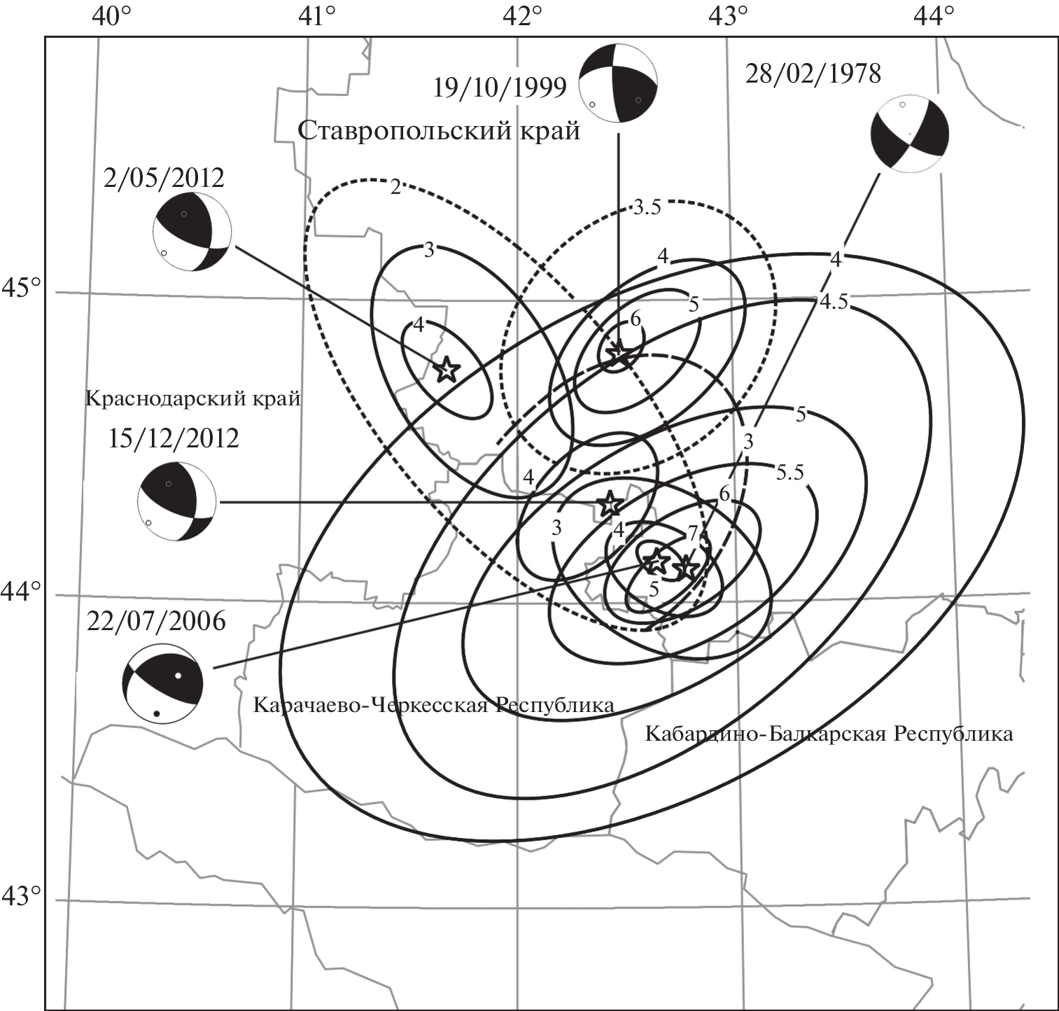 - Rogozhin, E.A., Nechaev, Yu.V., Solodilov, L.N., Ismail-zade, T.A. The trend in the development of the seismicity of the Caucasus and the seismogenic zones of the Stavropol Territory. Razvedka i okhrana nedr, 1998, no. 2, pp. 23–27. (in Russian)