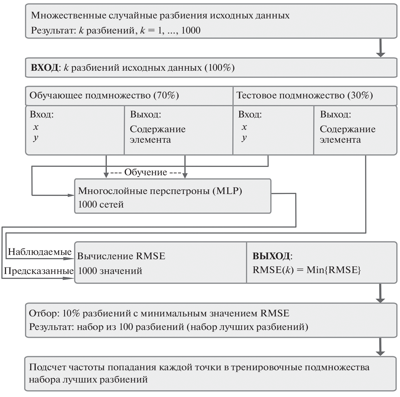 7. Baglaeva, E.M., Sergeev, A.P., Shichkin, A.V., Bue-vich, A.G. The Effect of splitting of raw data into training and test subsets on the accuracy of predicting spatial distribution by a multilayer perceptron. Mathematical Geosciences, 2020, vol. 52, pp. 111–121.