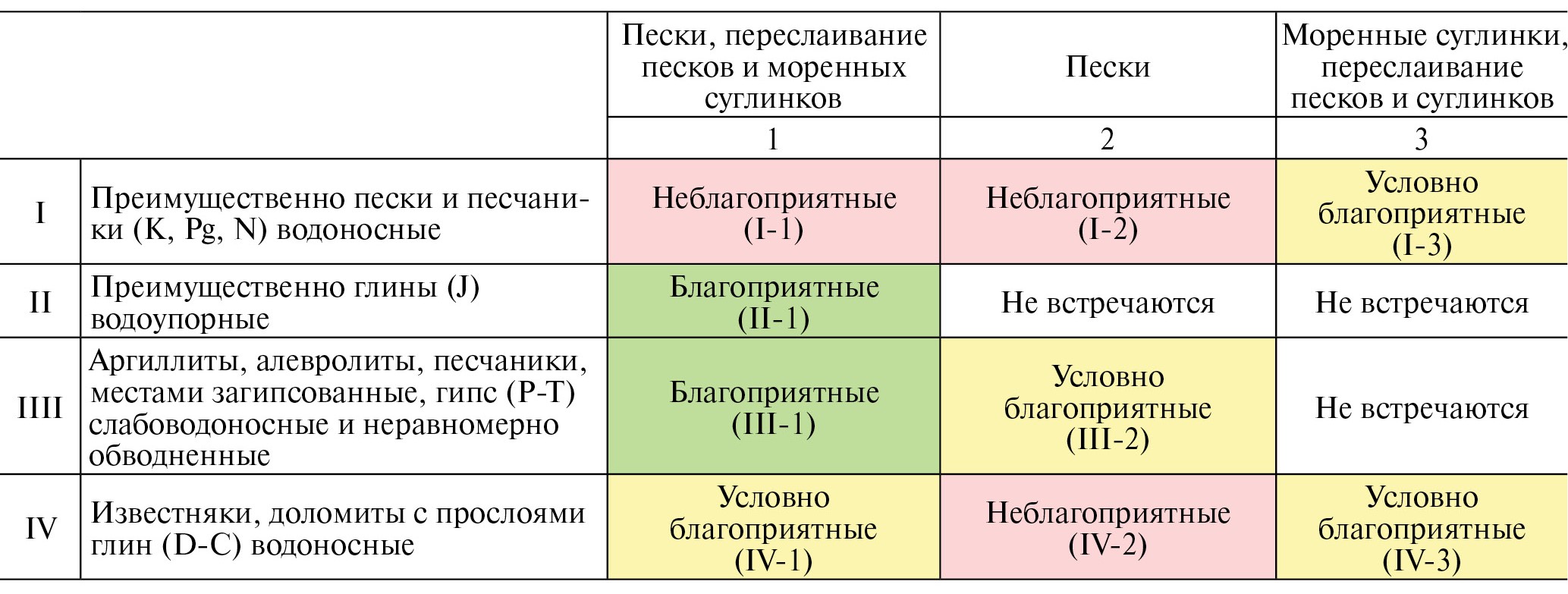 Таблица 1. Типизация грунтовых толщ, встречающихся на территории Владимирской обл., по благоприятности для размещения ТКО