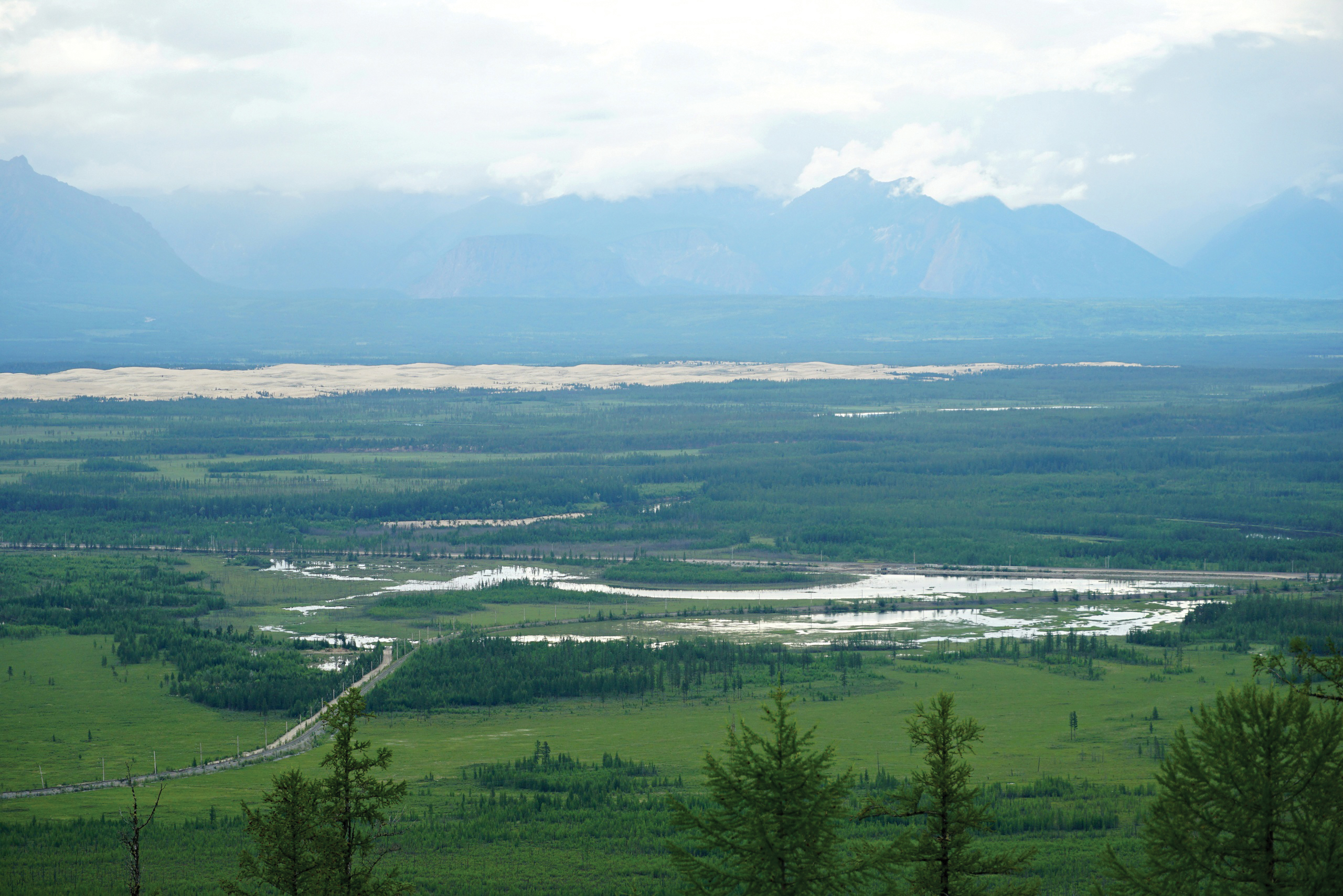 Рис. 9. Равнинный тип рельефа Чарской рифтовой впадины с поясом меандрирования р. Чара и заболоченными редколесьями – марями (фото А. Кулакова).