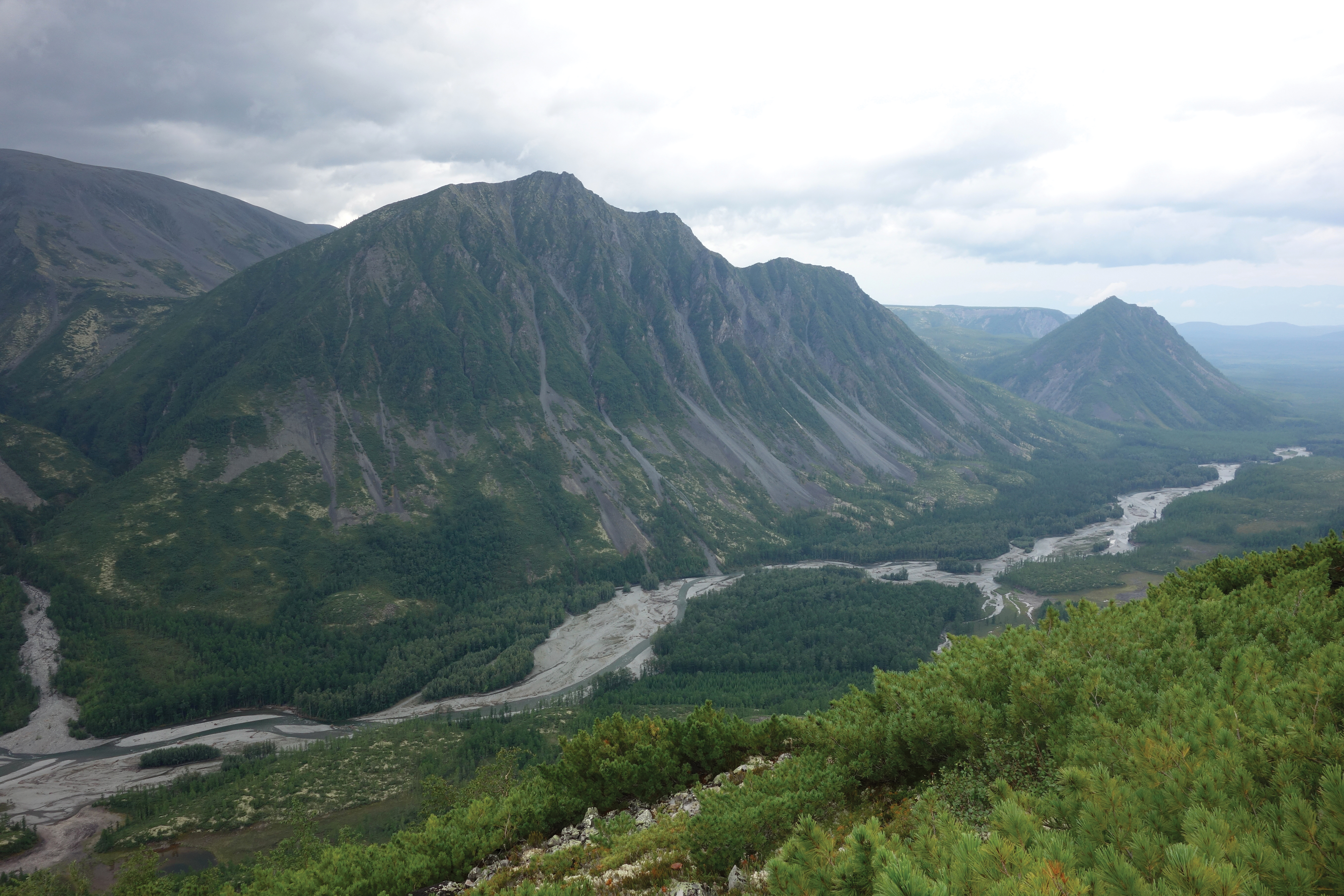 Каларский хребет-поднятие (V). На характер современных экзогенных процессов повлияли интенсивность прошедшего оледенения, а также блоковое строение хребта-поднятия. Доминирующим современным процессом на пологих и средней крутизны склонах (до 5–25°) является десерпционное перемещение грубообломочного материала. Крутые склоны (от 33°) троговых долин подвержены в большей степени гравитационно-склоновым процессам (осыпи, обвалы, камнепады) (рис. 14).
