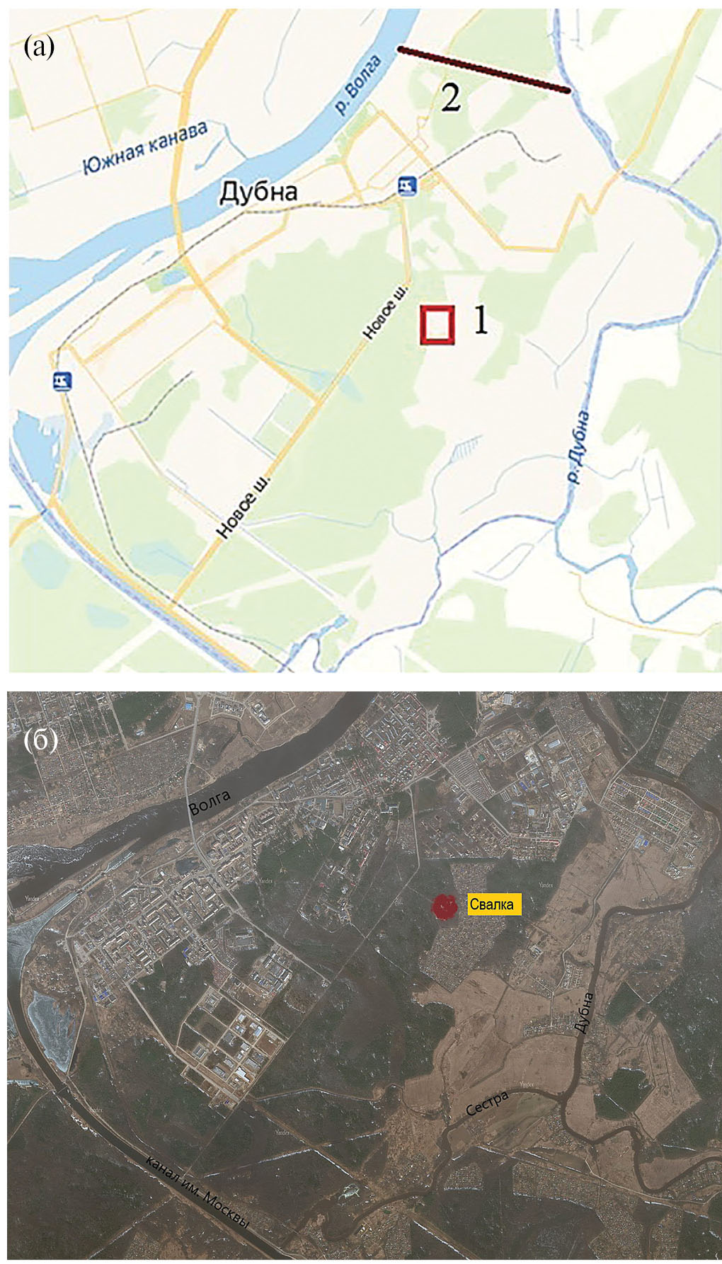 Рис. 1. Ситуационный план: a – схема; б – спутник.