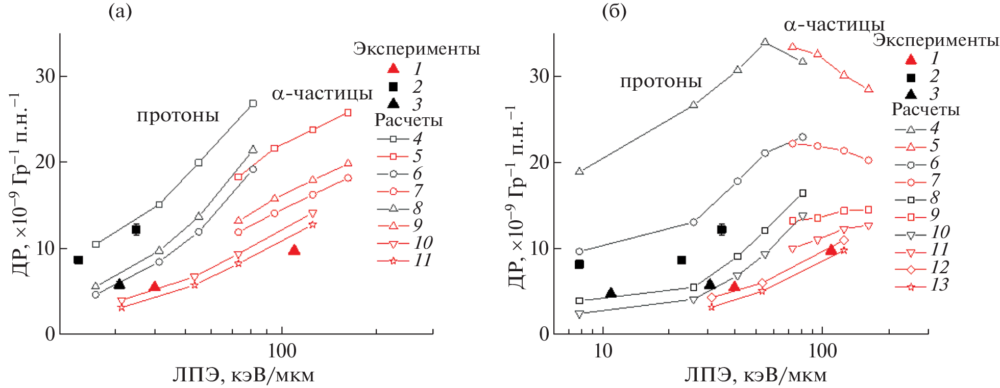 - Frankenberg D., Brede H.J., Schrewe U.J. et al. Induction of DNA double-strand breaks by 1H and 4He lons in primary human skin fibroblasts in the LET range of 8 to 124 keV/microm// Radiat. Res. 1999. V. 151. № 5. P. 540–549. https://doi.org/10.2307/3580030