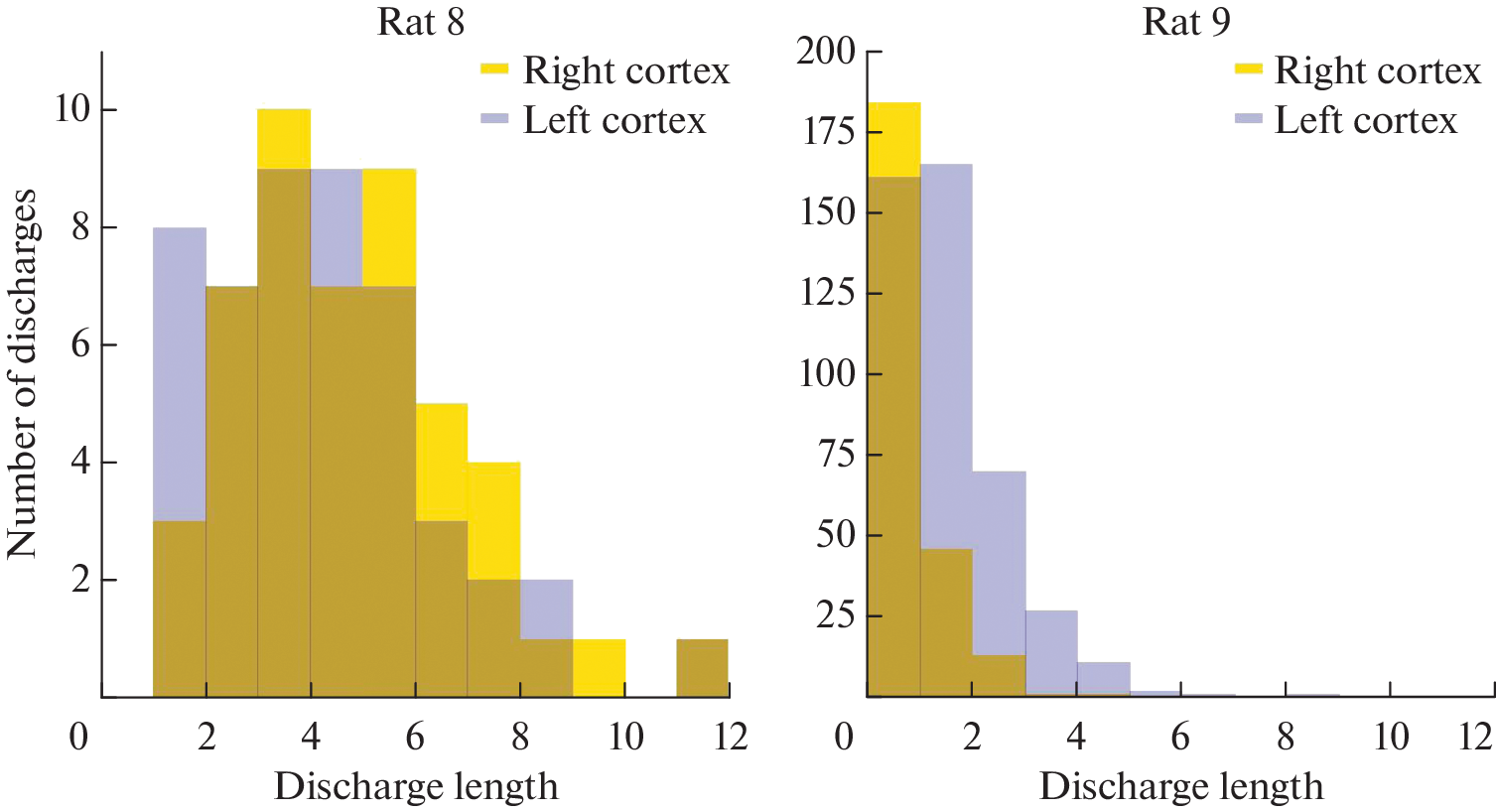 Absence epilepsy is a specific generalized non-convulsive form occurring almost exclusively in children and adolescents. It is traditionally thought that the resulting seizure is completely generalized in the cortex of both hemispheres, as seen in humans on surface electroencephalograms and magnetoencephalograms. However, most studies were performed on animals, mainly rats – genetic (WAG/Rij and GAERS lines) and pharmacological models, since signals not only from the cortex, but also from subcortical structures such as the thalamus must be measured, what cannot be done on humans, who have no medical indications for intracranial surgery. In animals, measurements of local field potentials were almost always made from one hemisphere in order to cover the maximum number of brain structures involved. At the same time, the degree of synchrony of seizure onsets and terminations in different hemispheres in animals was practically not studied, and the markup itself in the vast majority of cases was done on the basis of one channel from motor or somato-sensory cortex. This work aims to reveal differences and similarities in the course of spike-wave discharges (the main encephalographic marker of absence seizures) in the cortex of the two hemispheres in a known pharmacological model of rats exposed to pentylentetrazole. For discharge detection, a method of automatic discharge marking is proposed and its sensitivity and specificity are evaluated using records of nine animals. We used it to mark seizures in symmetrical cortical sites from both hemispheres separately. According to the results of the analysis of seizure duration it turned out that for five out of nine animals the distribution of discharges significantly differed between the hemispheres, and for the other four was equal. Consequently, in the rat model, spike-wave activity may be generalized both symmetrically and asymmetrically, which may be due to individual peculiarities or different discharge triggering scenarios.