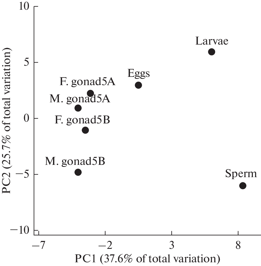 Анализ элементного состав гонад, половых продуктов и личинок мидии Mytilus galloprovincialis в период нереста