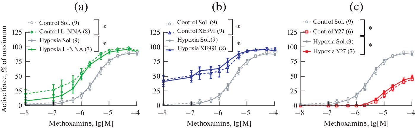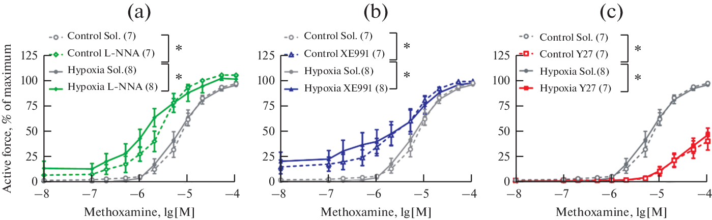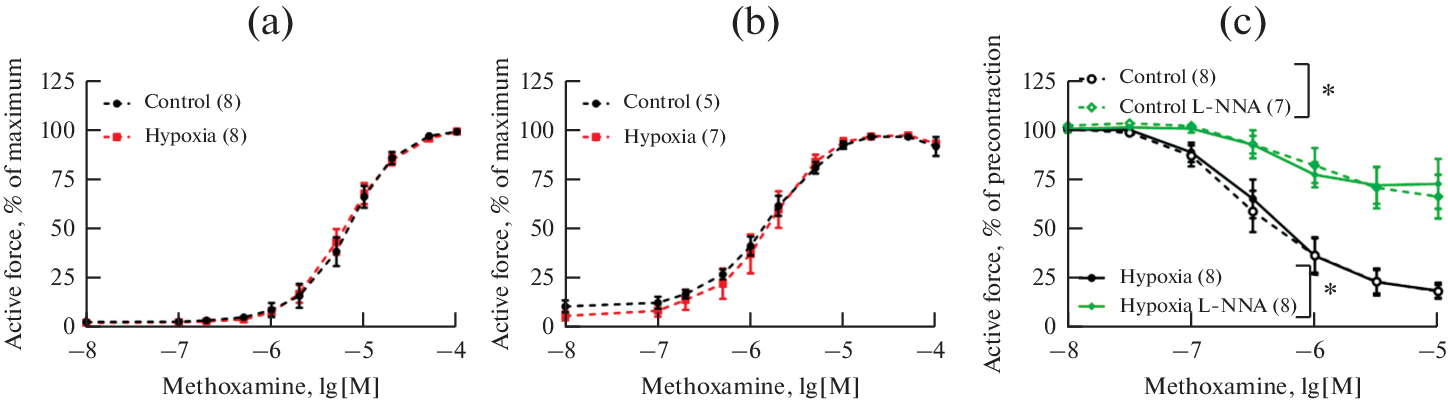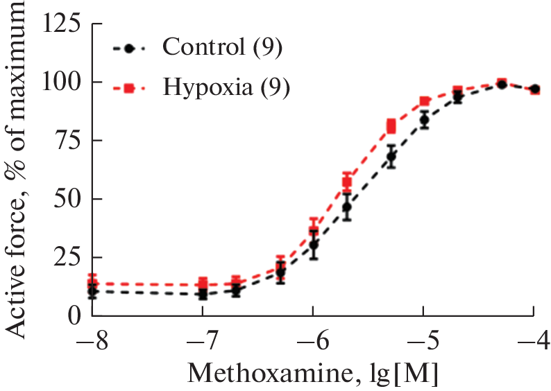 The normal functioning of the vascular system in early ontogenesis can be altered by adverse effects affecting the organism of the fetus / newborn during pregnancy, during or after childbirth. However, at the moment there is not enough data on the “acute” (immediately after exposure) and “delayed” (after several days) effects of short-term (within several hours) perinatal normobaric hypoxia on the functioning of the peripheral vascular system of the systemic circulation in early ontogenesis in mammals. The aim of this work was to study the “acute” and “delayed” effects of a single normobaric hypoxia on the functioning of the arteries of the systemic circulation in early postnatal ontogenesis. The contractile responses of the saphenous artery of rats aged 10–14 days were studied in isometric myograph. Acute normobaric hypoxia (8% O2) was simulated for 2 hours in 10-day-old rat pups. The selected hypoxia regimen did not lead to changes in arterial contractile responses to the α1-adrenergic agonist methoxamine either immediately after exposure or several days later. Endothelium-dependent relaxation of arteries to acetylcholine also did not differ between groups. Hypoxia did not change the contribution of anticontractile pathways associated with nitric oxide and Kv7 channels, as well as the pro contractile role of Rho-kinase. Thus, according to the presented results, short-term normobaric hypoxia on the 10th day of life in rat pups does not lead to either “acute” or “delayed” changes in the regulation of the tone of the peripheral arteries of the systemic circulation in the early postnatal period.