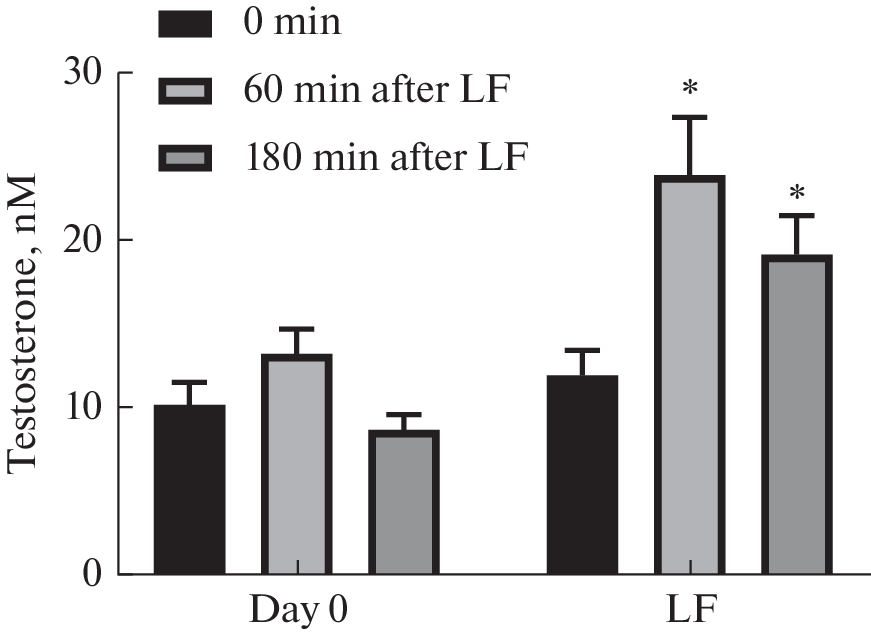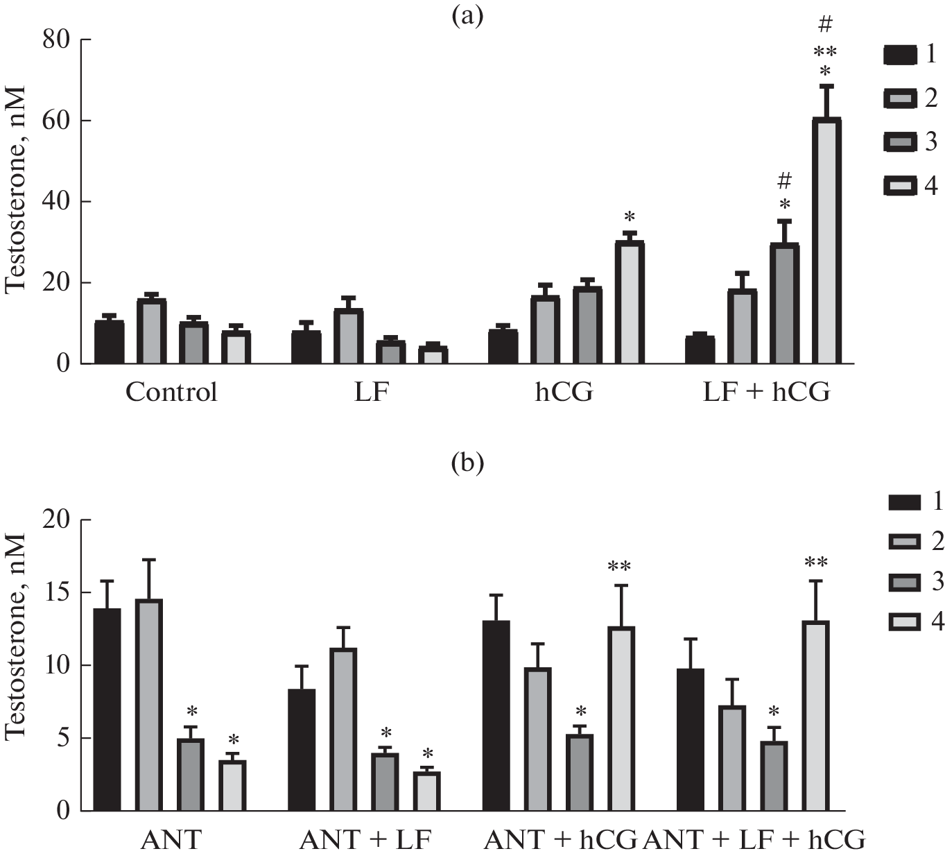 Адипокин лептин играет важную роль в регуляции репродуктивной системы. Он стимулирует активность гипоталамо-гипофизарно-гонадной оси, опосредованно действуя на нейроны, секретирующие гонадолиберин (GnRH), и модулирует стероидогенную функцию семенников посредством связывания с лептиновыми рецепторами в клетках Лейдига. Фрагмент лептина 116–122 (ФЛ), включающий основные рецептор-связывающие детерминанты этого адипокина, нормализует метаболические показатели у животных с диета-индуцированным ожирением. Однако его способность влиять на стероидогенную функцию семенников, в том числе посредством взаимодействия с GnRH-нейронами гипоталамуса, не изучена. Целью работы было изучить эффекты однократного и трехдневного интраназального введения ФЛ (200 мкг/крысу) на уровень тестостерона в крови и экспрессию стероидогенных генов в семенниках у половозрелых самцов крыс Вистар, а также оценить стероидогенную активность ФЛ в условиях стимуляции синтеза тестостерона хорионическим гонадотропином человека (ХГЧ, 15 МЕ/крысу, п/к) и при обработке животных ингибитором гонадной оси – антагонистом GnRH-рецептора цетрореликсом (75 мкг/кг, п/к). Показано, что ФЛ повышает уровень тестостерона в крови при однократном введении, а при трехдневном введении усиливает стероидогенный эффект ХГЧ. ФЛ и ХГЧ повышали экспрессию гена Star, кодирующего ключевой регуляторный белок стероидогенеза StAR. Введение цетрореликса снижало уровень тестостерона и экспрессию Star, а также компенсаторно усиливало экспрессию гена рецептора лютеинизирующего гормона. В условиях обработки GnRH-антагонистом потенцирующее влияние ФЛ на ХГЧ-индуцированную стимуляцию уровня тестостерона и экспрессии Star не было выявлено. Таким образом, ФЛ способен стимулировать стероидогенез в семенниках крыс и потенцировать стероидогенные эффекты ХГЧ. Поскольку его эффекты подавляются в присутствии GnRH-антагониста, то имеются основания считать, что действие ФЛ реализуется за счет стимуляции гипоталамических GnRH-нейронов.
