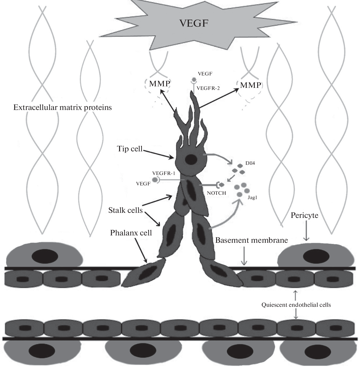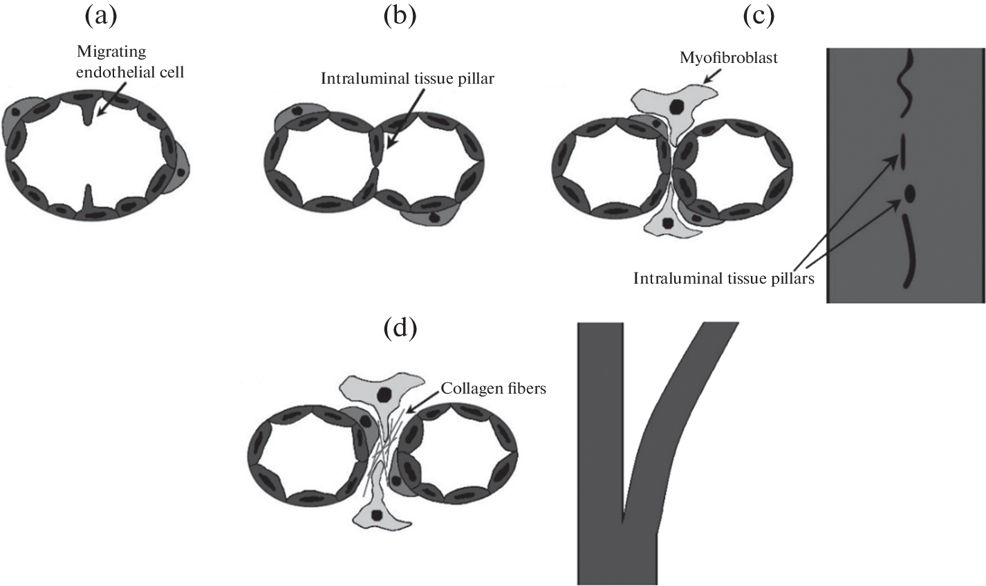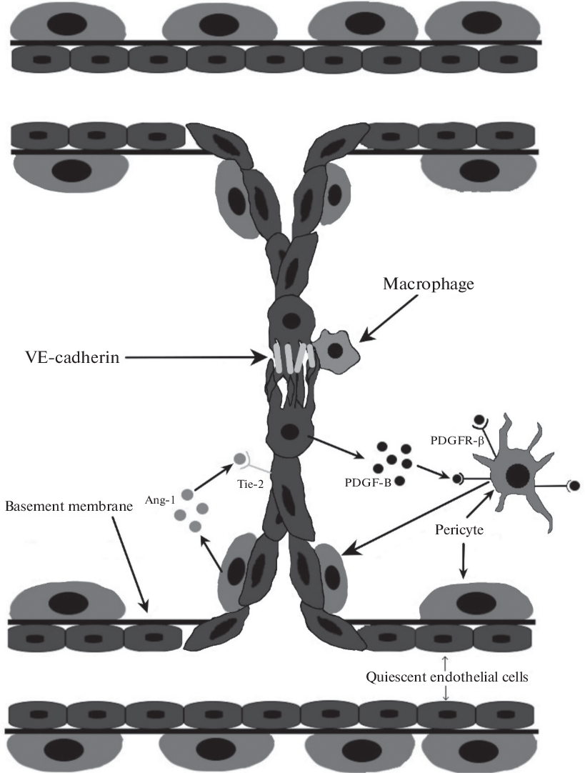 Ангиогенез представляет собой образование новых кровеносных сосудов из уже существующих для удовлетворения потребности ткани в перфузии. Во взрослом организме это часто реализуется в процессе роста и регенерации организма. Ангиогенез привлекает внимание исследователей с позиции его терапевтической регуляции: усиление может способствовать существенному прогрессу в терапии ишемических заболеваний, а ингибирование активно изучается для лечения опухолевых заболеваний. Регуляция ангиогенеза невозможна без точных знаний его механизмов. Ангиогенез осуществляется либо путем миграции эндотелиальных клеток существующего сосуда во внеклеточный матрикс для формирования сосуда по направлению ангиогенных стимулов, либо путем разделения сформированного сосуда на два новых в результате образования перегородки, отграничивающей два самостоятельных просвета. В данном обзоре рассматриваются основные этапы каждого из видов физиологического ангиогенеза, их механизмы и регуляция.