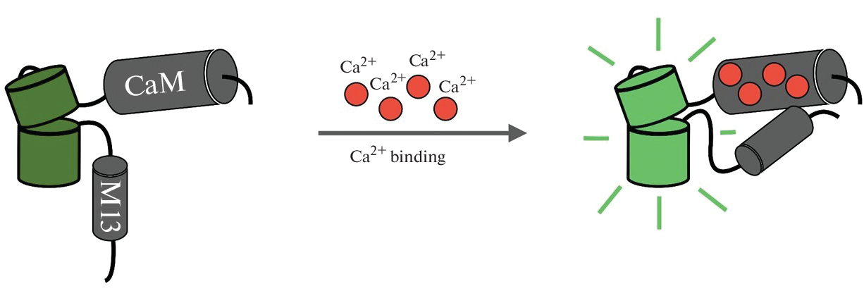 - Romoser VA, Hinkle PM, Persechini A (1997) Detection in living cells of Ca2+-dependent changes in the fluorescence emission of an indicator composed of two green fluorescent protein variants linked by a calmodulin-binding sequence. A new class of fluorescent indicators. J Biol Chem 272: 13270–13274. https://doi.org/10.1074/jbc.272.20.13270