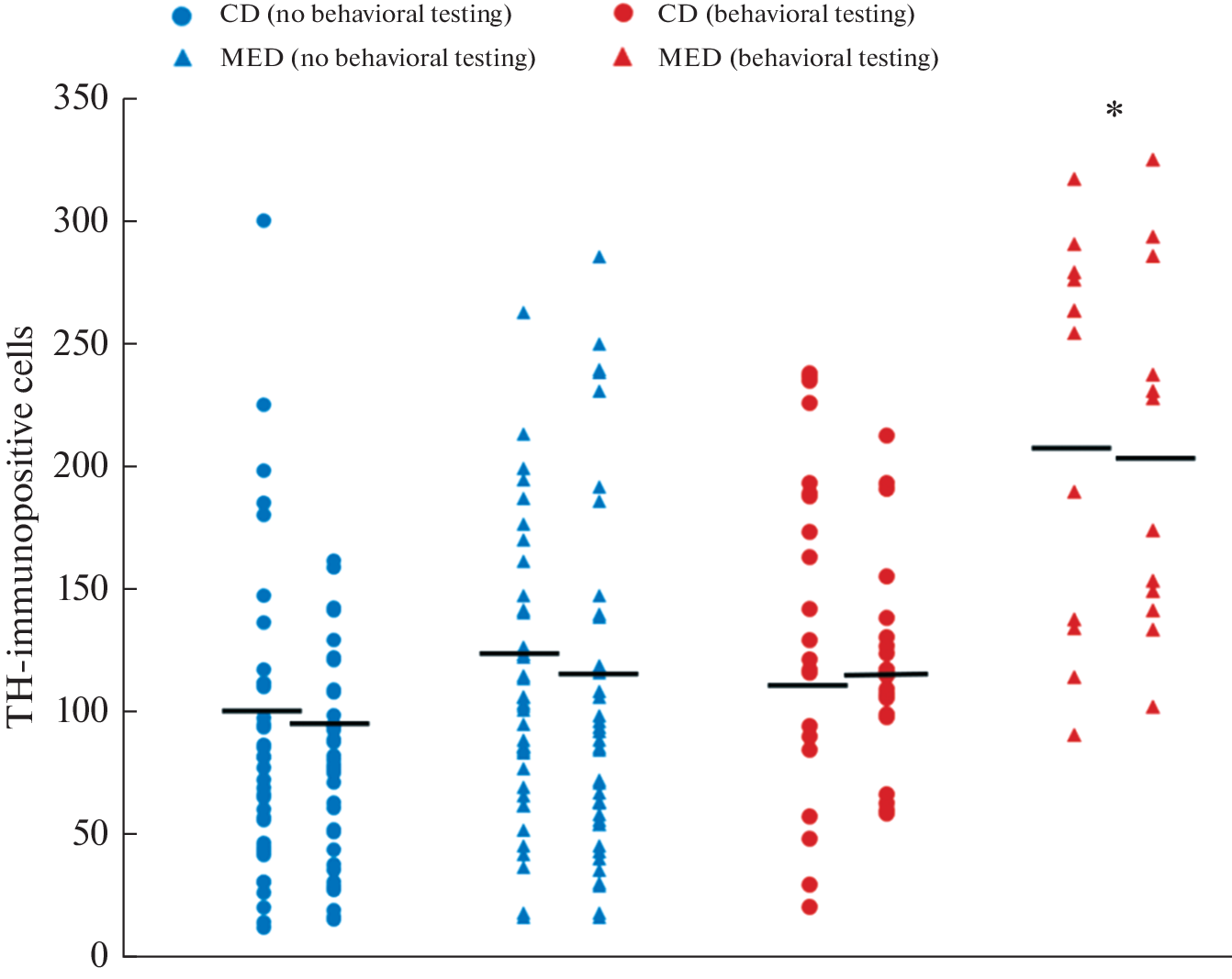 WAG/Rij rats are genetic model of absence epilepsy with comorbid depression. Pathologic phenotype in WAG/Rij rats was shown to be associated with reduced dopamine (DA) tone within the mesolimbic DAergic brain system. Previously, it was found that maternal methyl-enriched diet (MED) in the perinatal period increases DA content in the mesolimbic DAergic brain system and reduces absence seizures and comorbid depression in adult offspring of WAG/Rij rats. Ventral tegmental area (VTA), containing DA cells bodies, is a main source of the mesolimbic DA synthesis. The aim of this study was to test the hypothesis that increases in the mesolimbic DAergic tone induced by maternal MED in offspring may be due to an increase in the number of DA-synthesizing neurons in the VTA. Immunohistochemistry for thyrosine hydroxylase (TH) was used to assess the number of TH-immunopositive cells in adult offspring of WAG/Rij rats born to mothers fed control diet or MED and subjected or not subjected to behavioral testing for 2 consecutive days in the light-dark choice, open field, elevated plus maze and forced swimming tests. One hour after the forced swimming test animals were anesthetized. Brains were fixed using transcardial perfusion. The number of DAergic neurons was determined by the number of TH-immunopositive cells on brain slices at the level of VTA. The number of TH-immunopositive cells was counted in left and right hemispheres separately. A significant effect of maternal MED on the number of cells in the VTA expressing TH has been established. Adult WAG/Rij offspring born to mothers fed MED had an increased number of TH-immunopositive cells as compared with the offspring born to mothers fed control diet. Moreover, in WAG/Rij offspring born to mothers fed MED, the number of TH-immunopositive cells was greater in animals subjected to behavioral testing compared with animals not subjected to behavioral testing. The effects of maternal MED and behavioral testing on the number of TH-immunopositive cells in the VTA were equally expressed in the left and right hemispheres of the brain. Results suggest that maternal MED in the perinatal period can affect the developing mesolimbic DAergic brain system, promoting the generation and/or maintenance of DA neurons in the VTA, and thereby prevent the occurrence of genetic absence epilepsy and comorbid depression in the offspring of WAG/Rij rats.