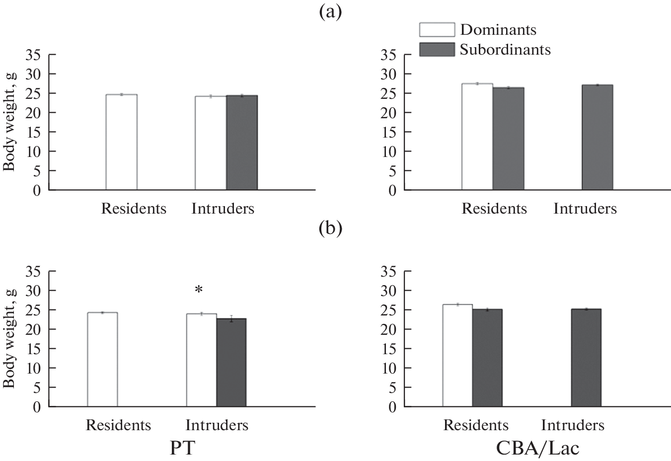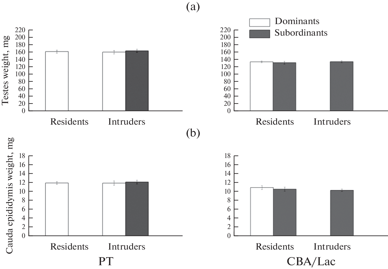 Влияние формирования доминантно-субординантых отношений в модели резидент–интрудер на тестикулярную функцию у лабораторных мышей инбредных линий PT и CBA/Lac