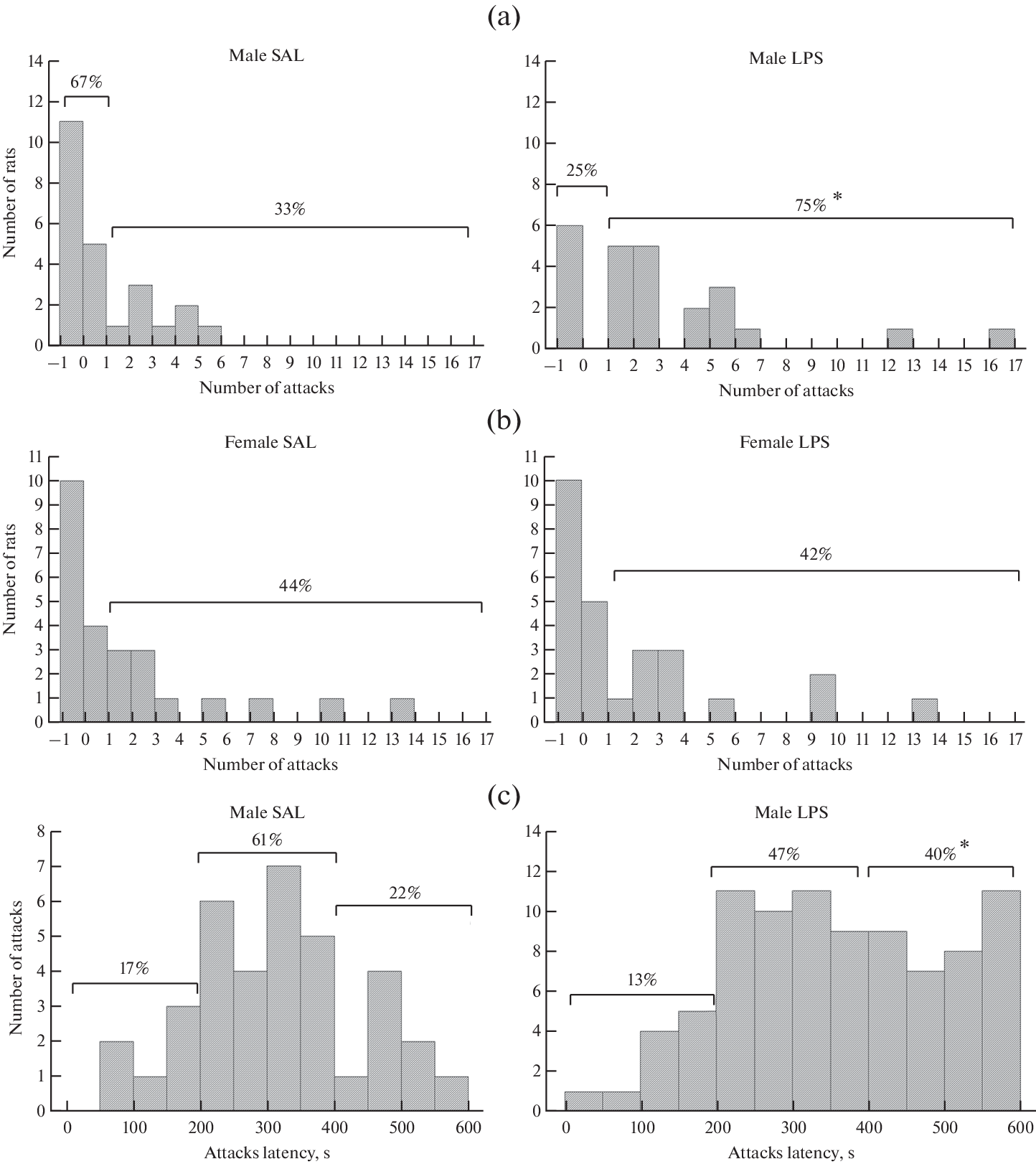 Stresses in early ontogenesis can influence anxiety-depressive, defensive and social behavior, as well as the immune and hormonal reactivity of adult animals. The model of early proinflammatory stress assumes activation of the immune system by the introduction of bacterial lipopolysaccharide (LPS) in early ontogenesis. Whether neonatal LPS stress impacts aggressive behavior or sexual motivation is still unknown. Pathological aggressiveness and disorders in sexual behavior are characteristic of many neuropsychiatric diseases, therefore, the study of the prerequisites for their occurrence is highly relevant. On the 3rd and 5th day after birth, the rats were injected with either LPS at a dose of 50 mcg/kg (LPS group) or saline solution (SAL group, control). The aggressive behavior of adult rats in the resident-intruder test after a week of social isolation was analyzed, as well as the sexual preference of males or females in a three-chamber test. The behavior of rats was compared with baseline levels of corticosterone and interleukin-1beta in blood serum. The males of the LPS group compared with the control had more attacks on the intruder in the resident-intruder test, and the number of attacks did not decrease by the end of the experiment. The males of the LPS group had an increased interaction time with the female at the diestrus stage in the social preference test of males and females. There were no changes in aggressive behavior in females after the administration of LPS in early ontogenesis. The baseline level of interleukin-1beta was higher in males, and corticosterone was higher in females, there were no differences between the LPS and PHYS groups in biochemical parameters. The results obtained indicate an increase in aggressiveness provoked by social isolation, as well as sexual motivation in adult males after early pro-inflammatory stress, i.e., a change in the motivational and emotional component in social behavior.