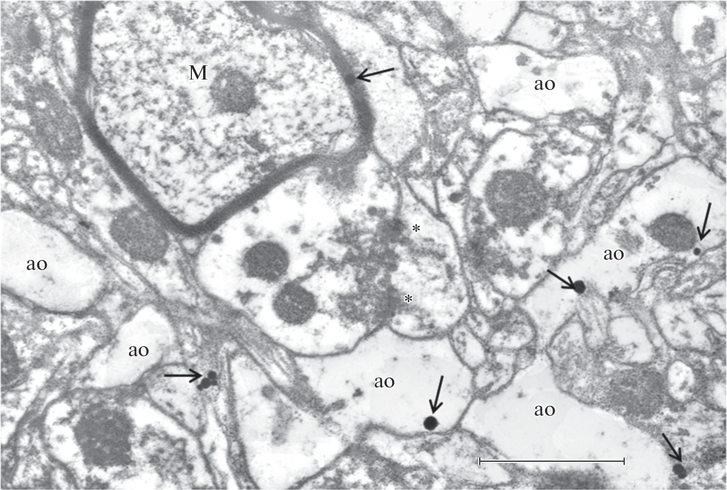 Gamma aminobutyric acid (GABA) plays an important role in regulating the development and functioning of the brain. The aim of this work was to study the involvement of GABA contained in non-neuronal cells in the differentiation and maturation of rat neocortical grafts. Pieces of fetal somatosensory neocortex were transplanted into the acute cavity of the homotopic region of the cortex of adult male rats. 4 months after the operation, the histological and electron microscopic examinations of the grafts were performed. The grafts were well vascularized and consisted of neuronal and glial cells. The localization of GABA in non-neuronal cells was studied by an ultrastructural immunocytochemistry using antibodies conjugated with colloidal gold. The highest expression of immunolabels in the form of electron-dense globules ranging in size from 20 to 60–80 nm was found in protoplasmic astrocytes and their processes. The pericapillary astrocytic endfeets also contained GABA-positive granules. In addition, GABA-positive granules have been observed in some myelin-forming cells and in the endothelial wall of blood vessels. The results obtained showed that GABAergic signaling via non-neuronal cells is involved in the morphofunctional differentiation of the transplanted neocortical tissue.