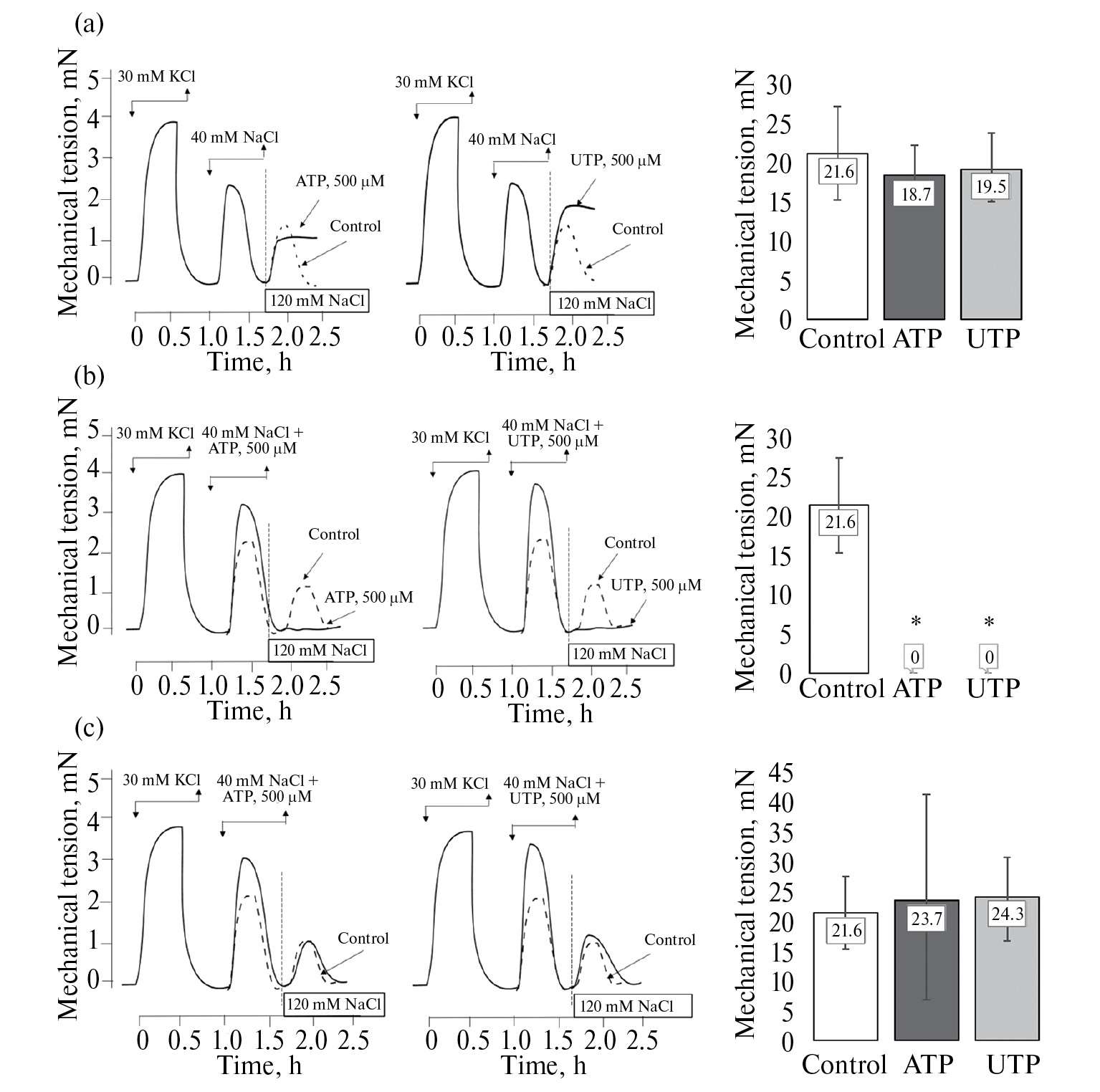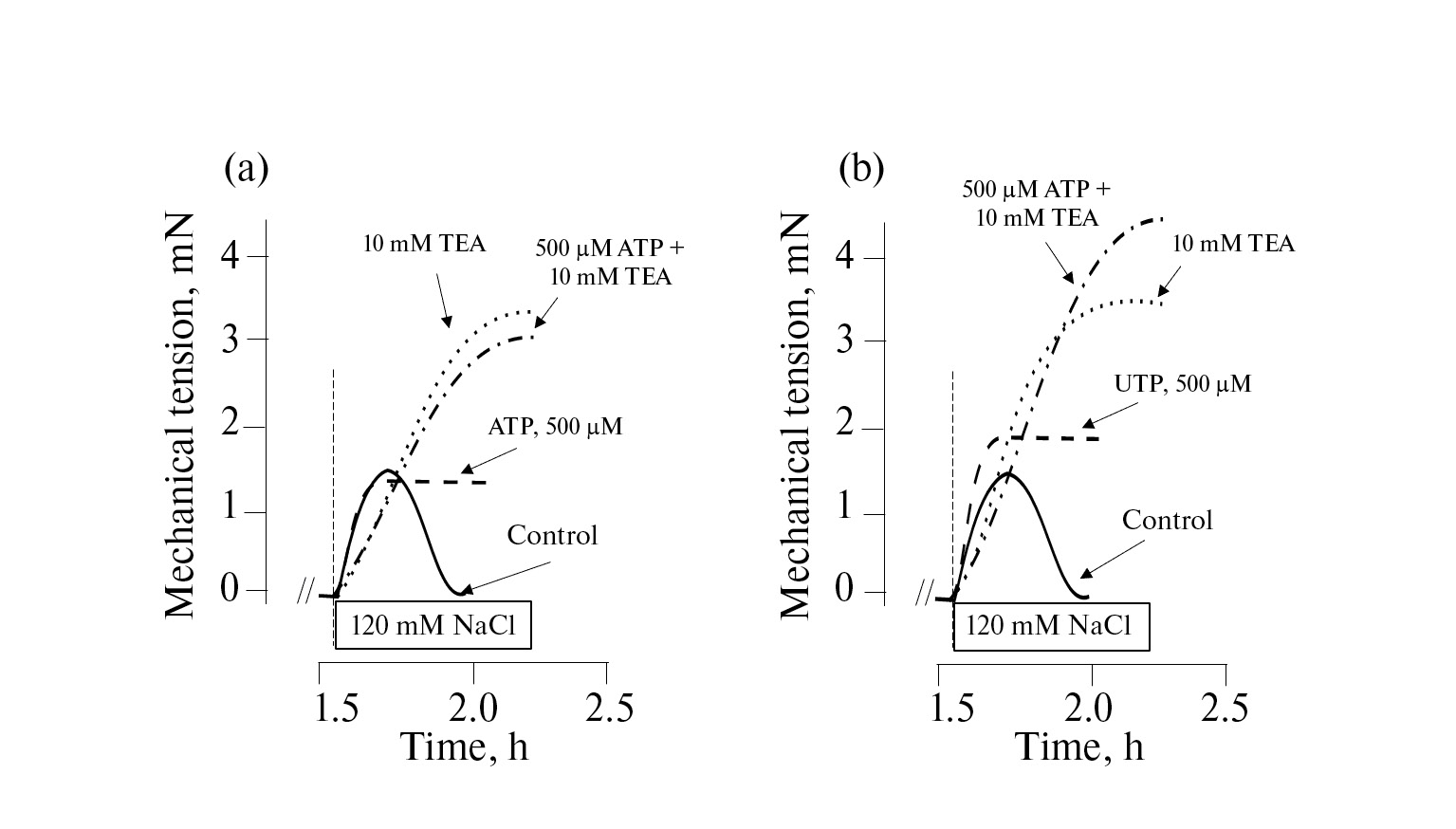 120 мМ NaCl + 500 мкМ УТФ | ||||