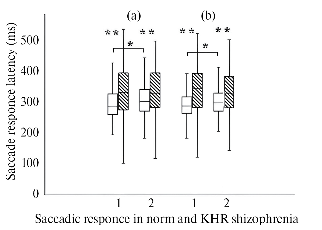 Проблема физиологических механизмов когнитивной регуляции поведения человека и их нарушений при психической патологии остается одной из центральных в нейро- и психофизиологии на протяжении нескольких десятилетий. Информативной моделью для ее решения служат саккадические движения глаз, которые как неотъемлемый компонент зрения участвуют во всех видах адаптивного поведения. Программирование саккадических движений глаз непосредственно включает в себя процессы внимания [1], памяти [2–3], принятия решения и торможение [4].