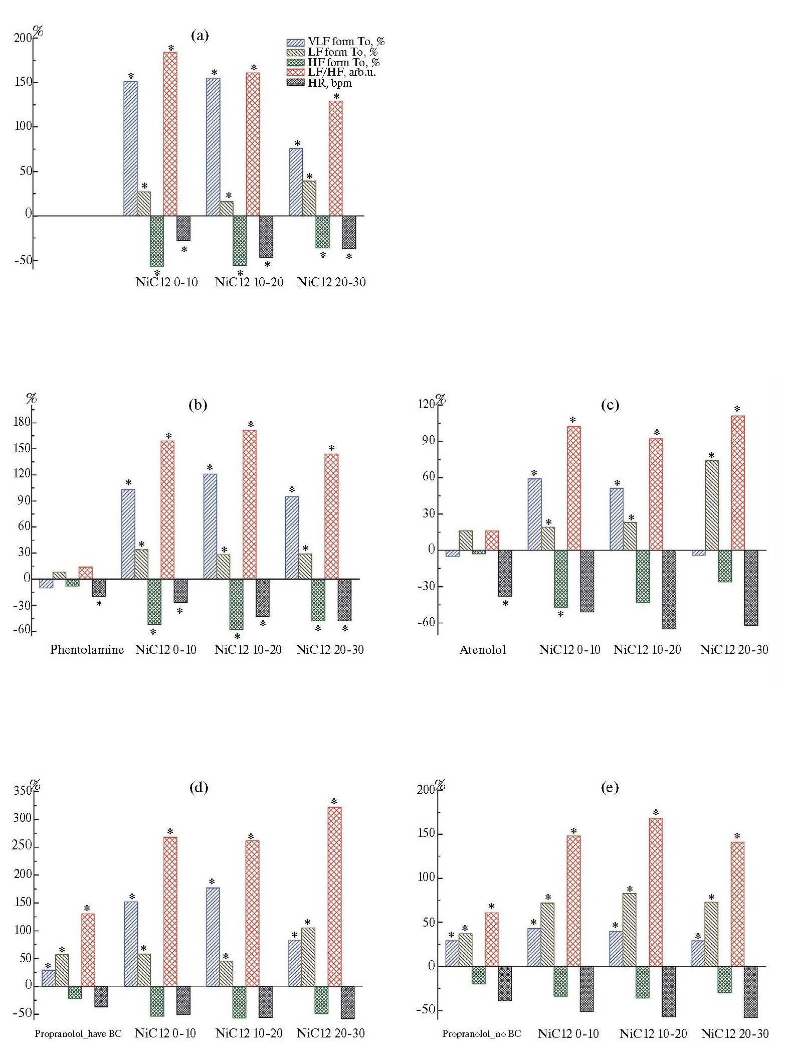 VLF, % | 20.1 ± 2.8 | 50.4 ± 2.4* | 51.3 ± 2.1* | 35.3 ± 5.5* |