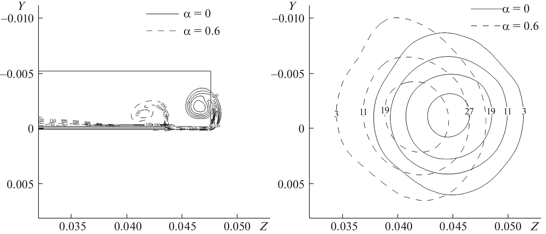 Исследовано влияние пористой законцовки крыла на формирование концевого вихря и его свойства при сверхзвуковом обтекании. Установлено, что пористая законцовка существенно влияет на структуру и параметры вихря, уменьшает его интенсивность.