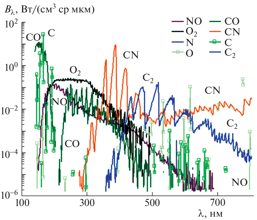 - Johnston C.O., Hollis B.R., Sutton K. Spectrum modeling for air shock-layer radiation at lunar-return conditions // J. Spacecr. Rockets. 2008. V. 45. P. 865–878.