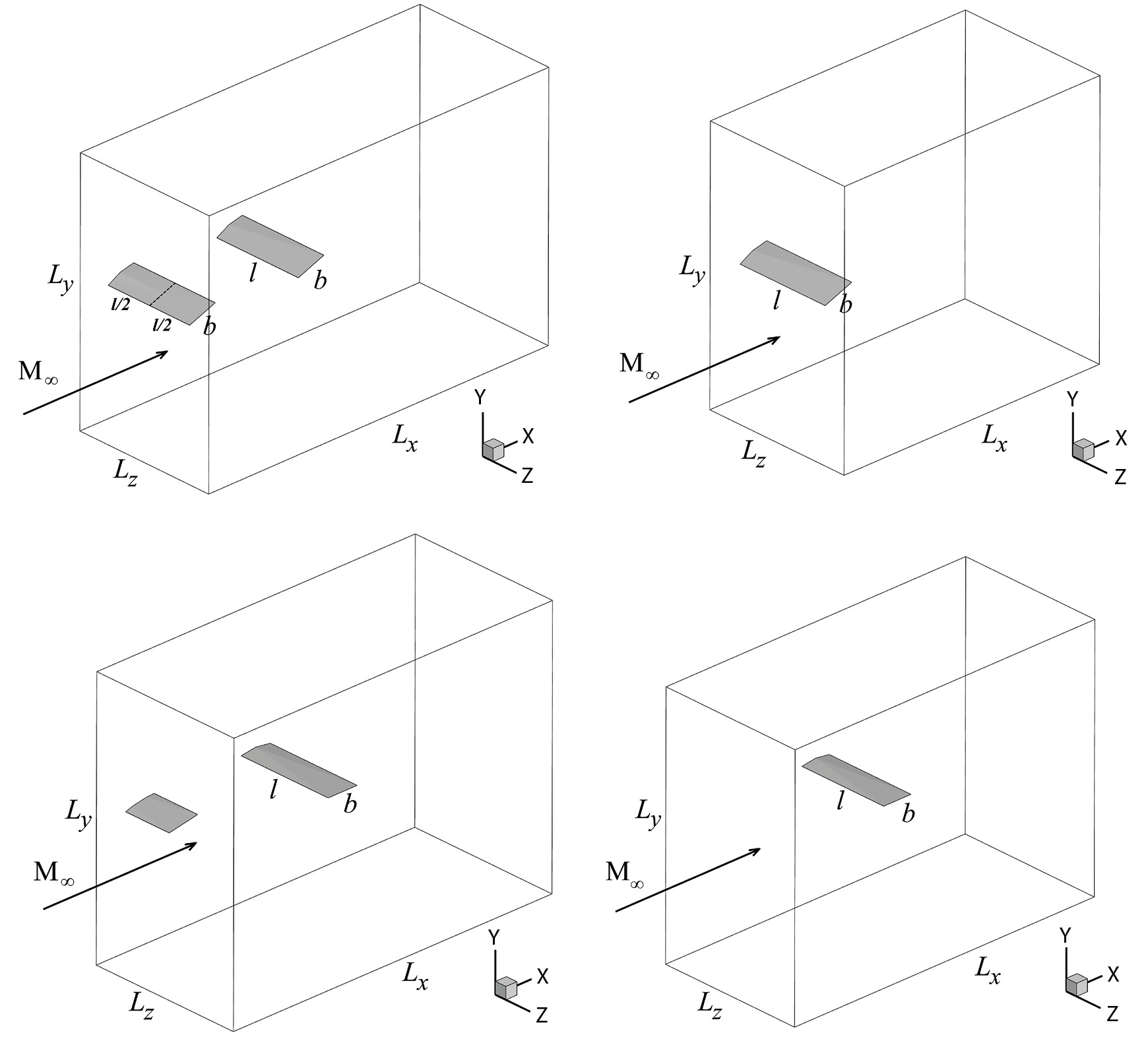 В настоящей работе численно исследуется сверхзвуковое обтекание тандема модельных крыльев [11] в нескольких конфигурациях (рис. 1).