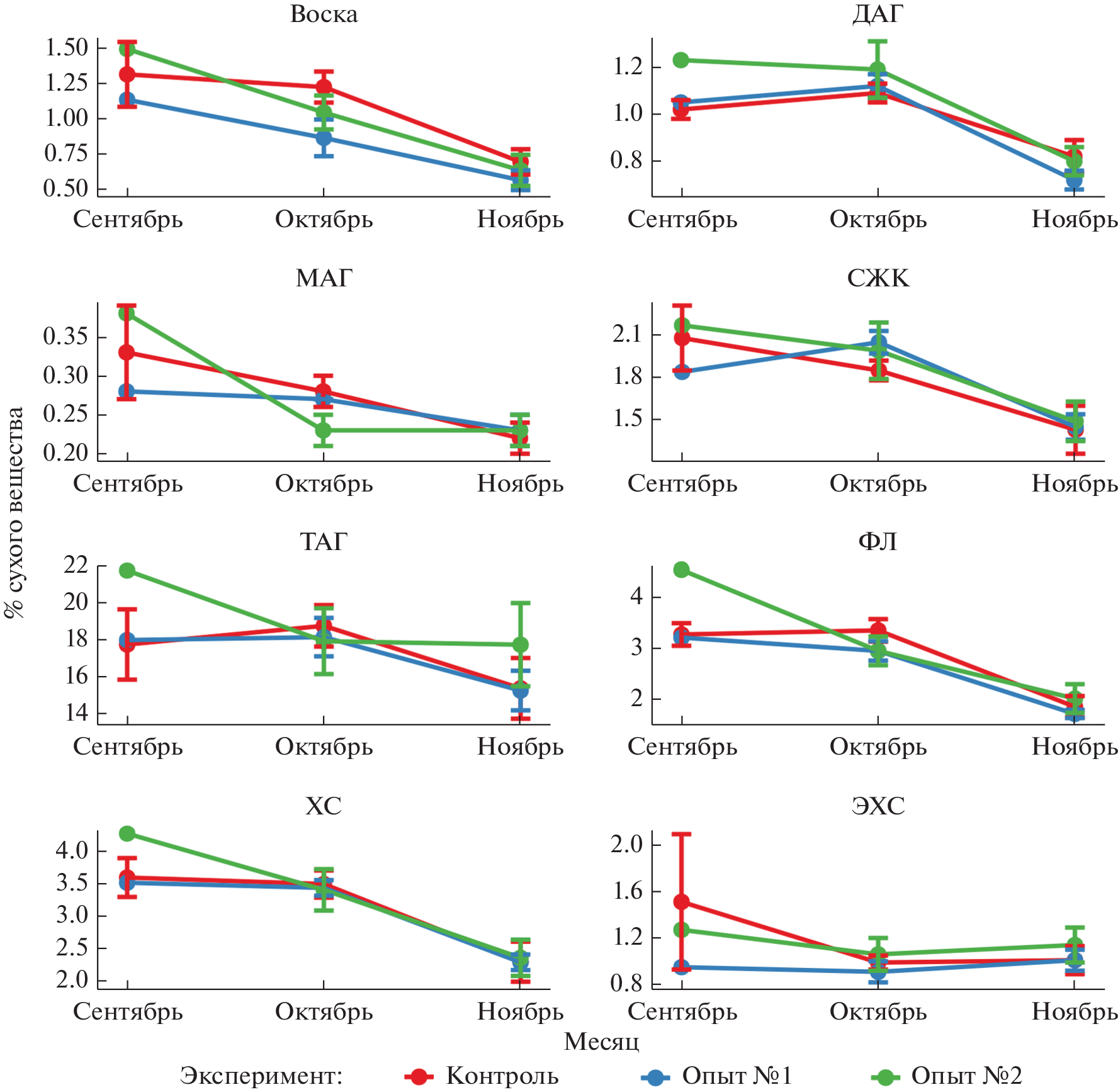- Graeve M., Kattner G., Hagen W. Diet-induced changes in the fatty acid composition of Arctic herbivorous copepods: experimental evidence of trophic markers // J. Exp. Mar. Biol. Ecol. 1994. V. 182. P. 97–110.