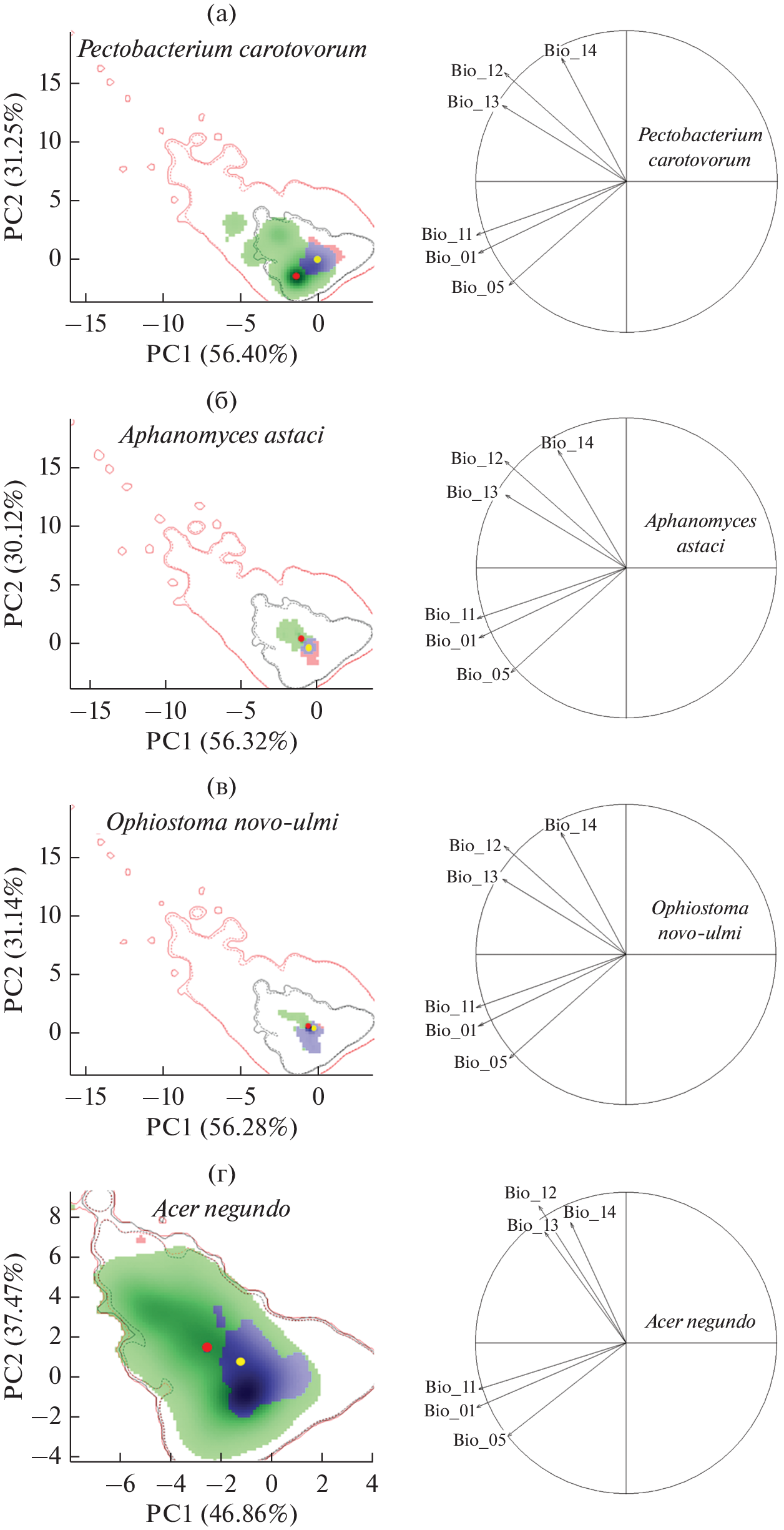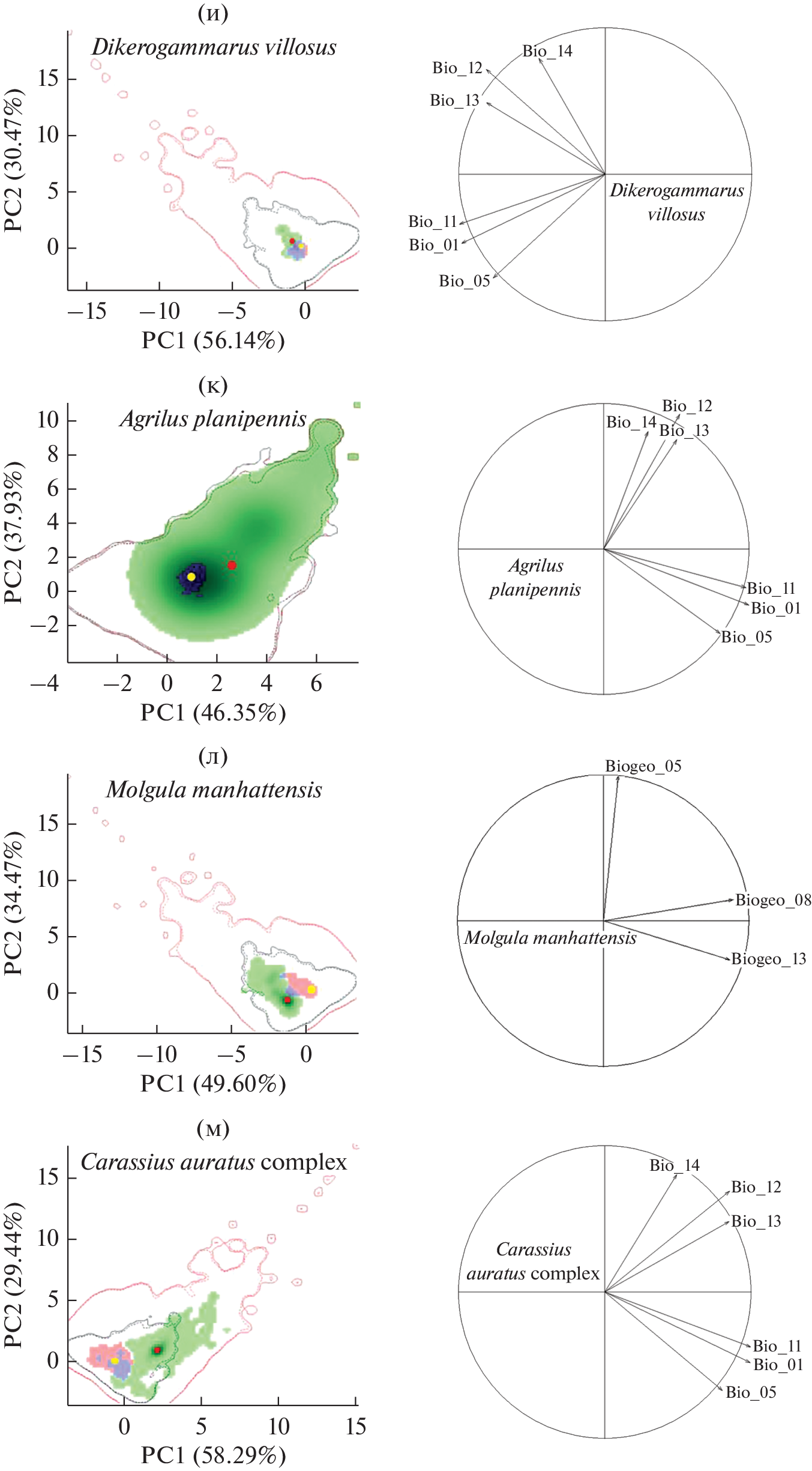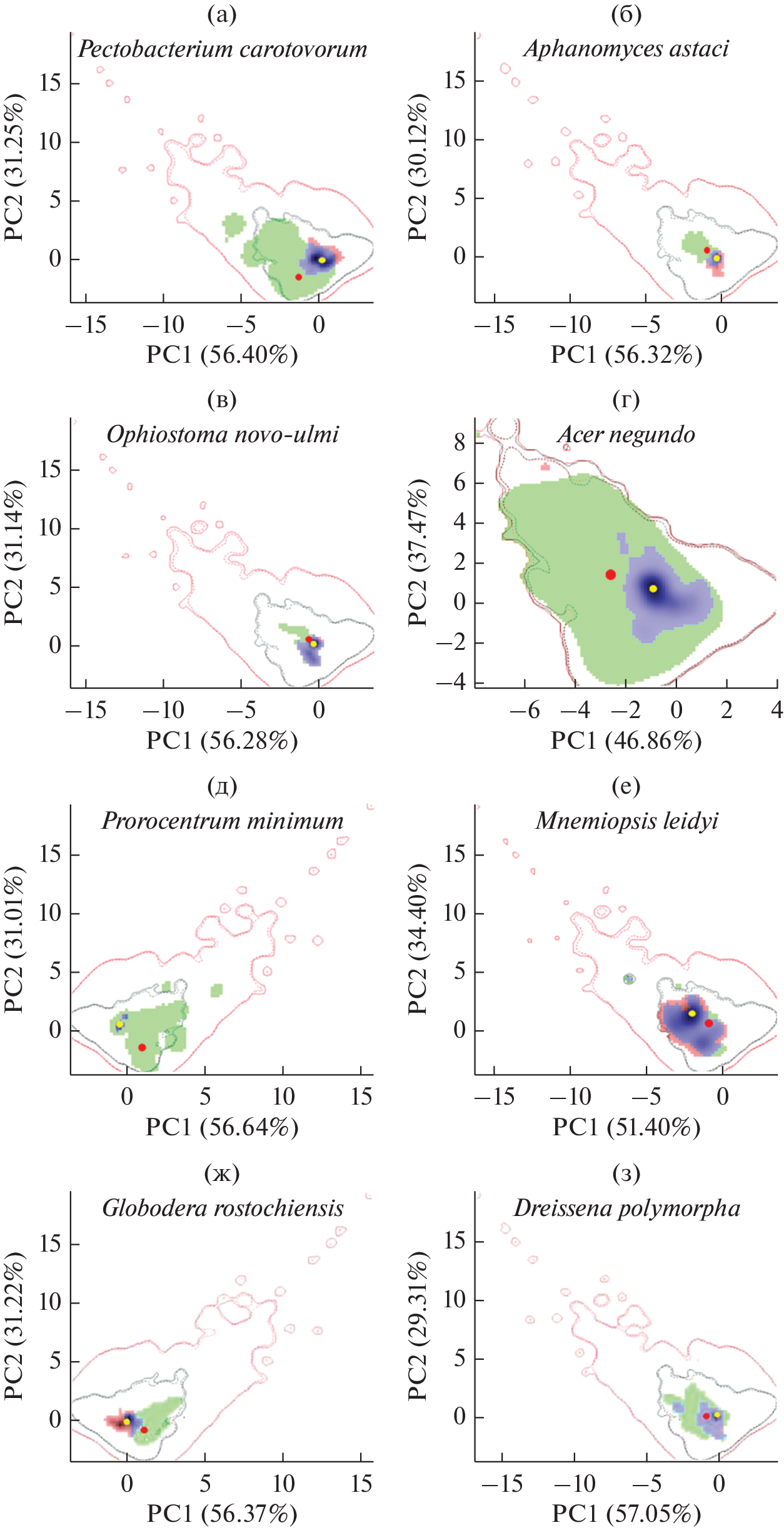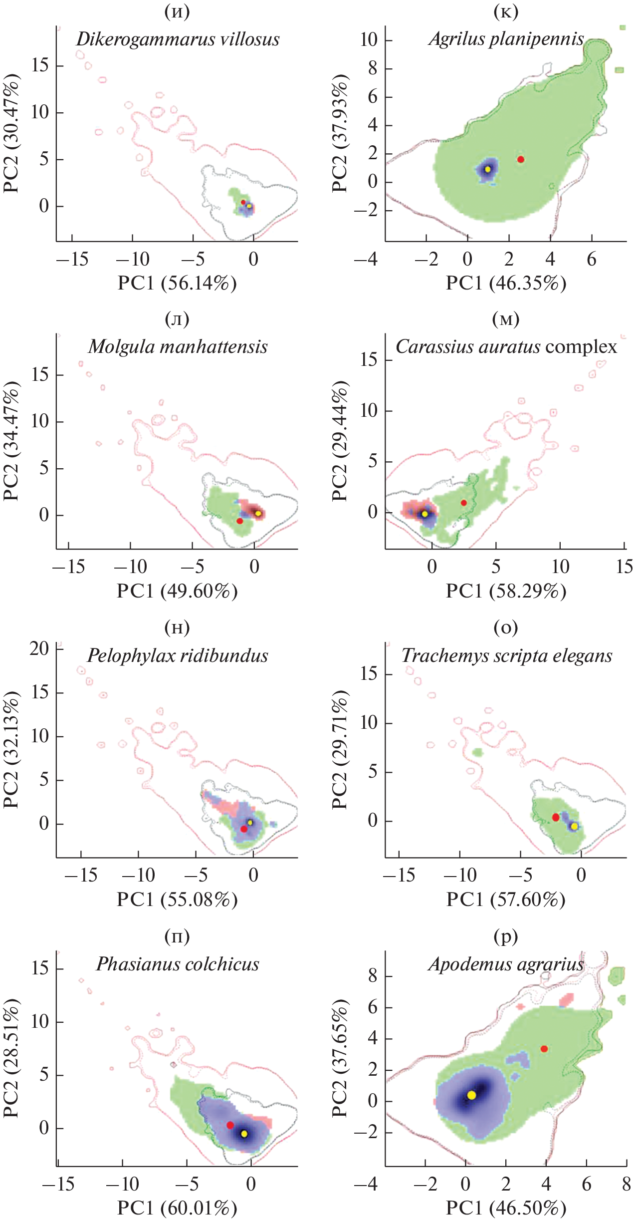 - Broennimann O., Fitzpatrick M.C., Pearman P.B., Petitpierre B., Pellissier L., Yoccoz N.G., Thuiller W., Fortin M.J., Randin C., Zimmermann N.E., Graham C.H., Guisan A. Measuring ecological niche overlap from occurrence and spatial environmental data // Global Ecology and Biogeography. 2012. V. 21. P. 481–497. https://doi.org/10.1111/j.1466-8238.2011.00698.x