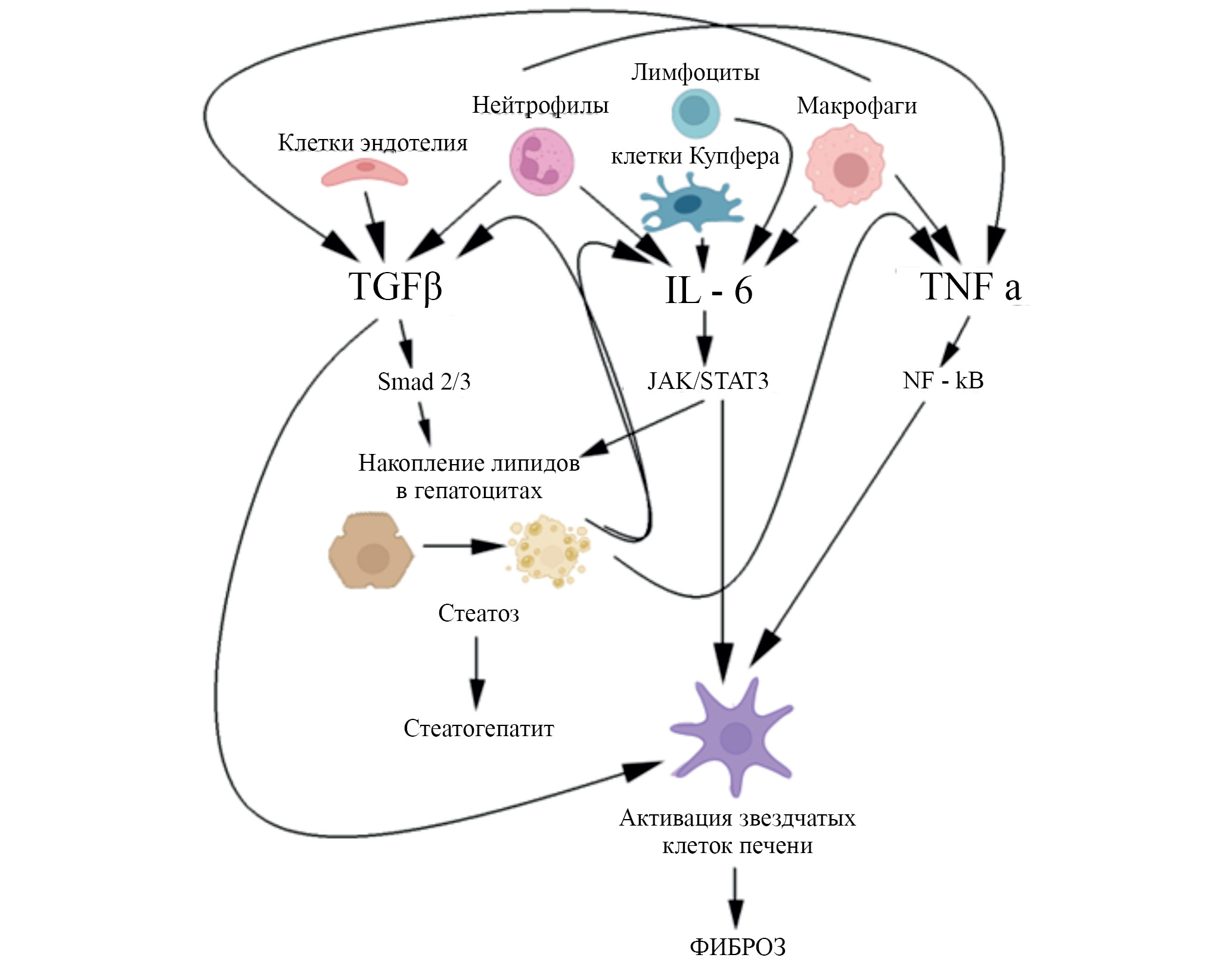 Сигнальные пути, опосредованные TGFβ, IL-6/JAK/STAT3 и TNFα/TNFR, как участники прогрессирования НАЖБП