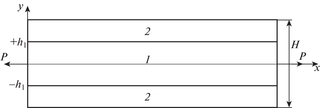 Рассматривается напряженно-деформированное состояние и определяется время до разрушения составного растягиваемого стержня при ползучести. Стержень состоит из трех частей, расположенных симметрично по толщине. Принято дополнительное условие: все части составного стержня жестко, без проскальзывания соединены между собой. Ползучесть каждой части стержня описывается степенной моделью с различными параметрами. Для определения времени до разрушения используется кинетическое уравнение, которое описывает накопление повреждений в процессе ползучести. Для каждой части стержня принят одинаковый вид кинетического уравнения, но накопление повреждений происходит под действием напряжений, различных для каждой из частей. Анализируются распределения напряжений и процессы накопления повреждений во времени в различных частях составного стержня. Определяются значения материальных констант в степенных законах ползучести и длительного разрушения, приводящие к увеличению времени до разрушения составного стержня.