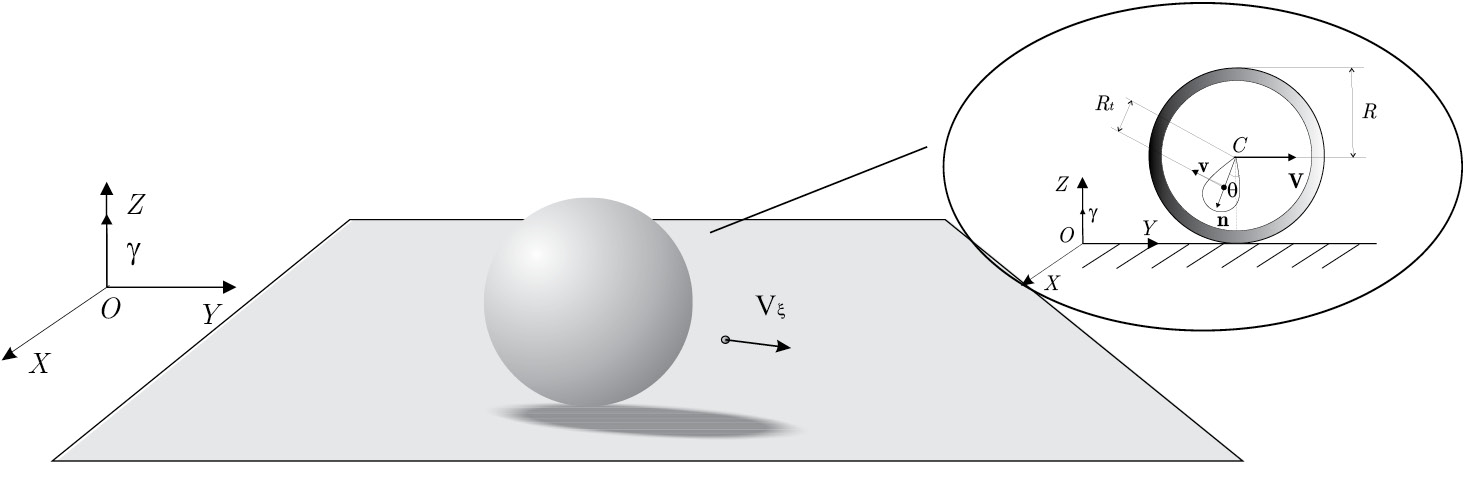 2.1. Кинематические связи, уравнения движения. Условия непроскальзывания сферической оболочки в точке контакта с платформой П имеют вид