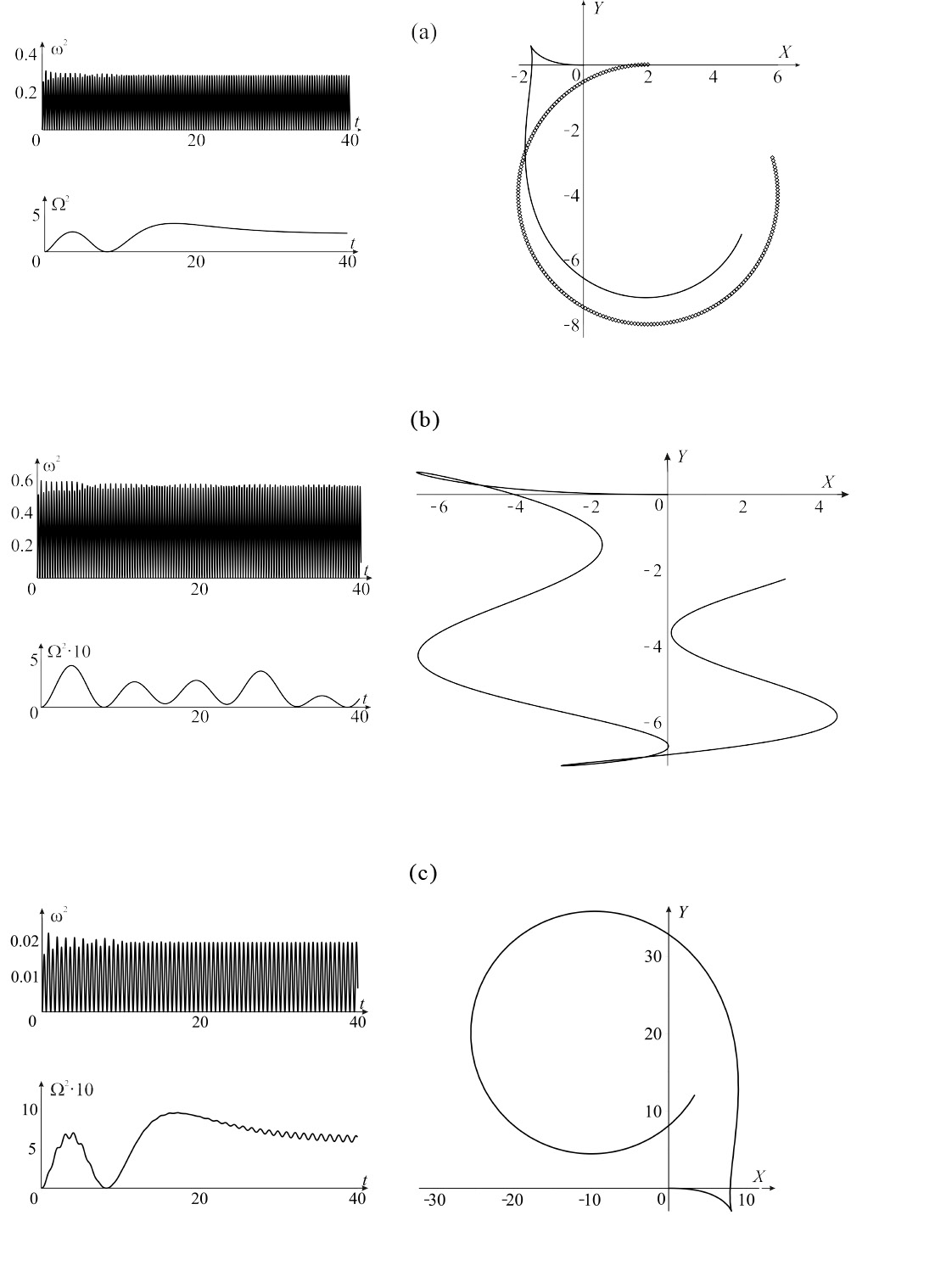 Аналогично, рис. 6,а–c соответствуют движению сфероробота с ненулевыми начальными условиями:
