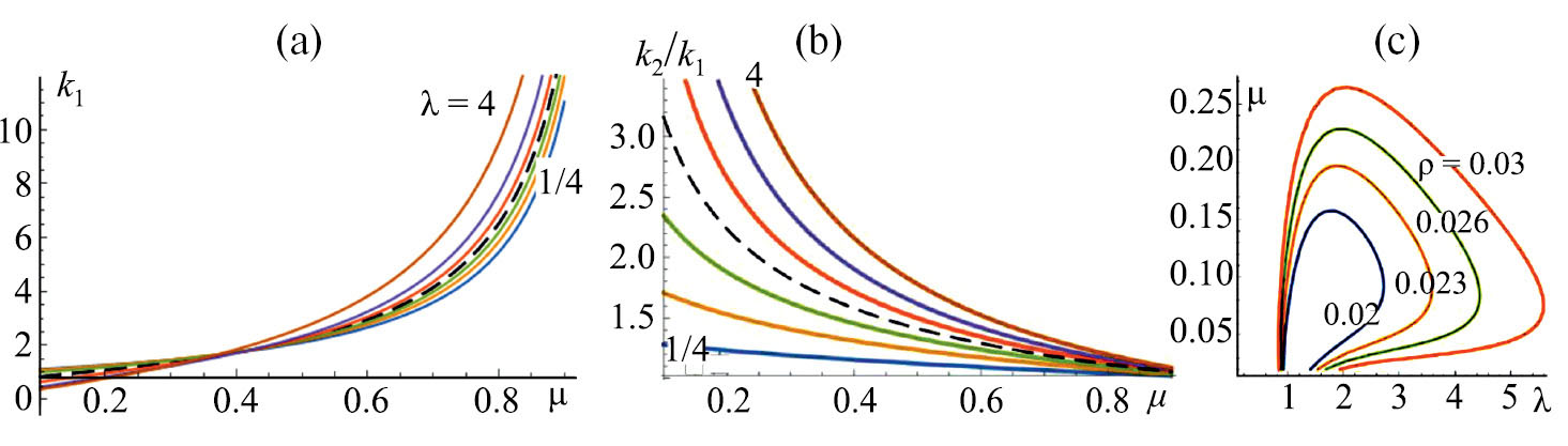 На рис. 2, c представлены границы этих областей для = 0.02; 0.023; 0.026; 0.03.