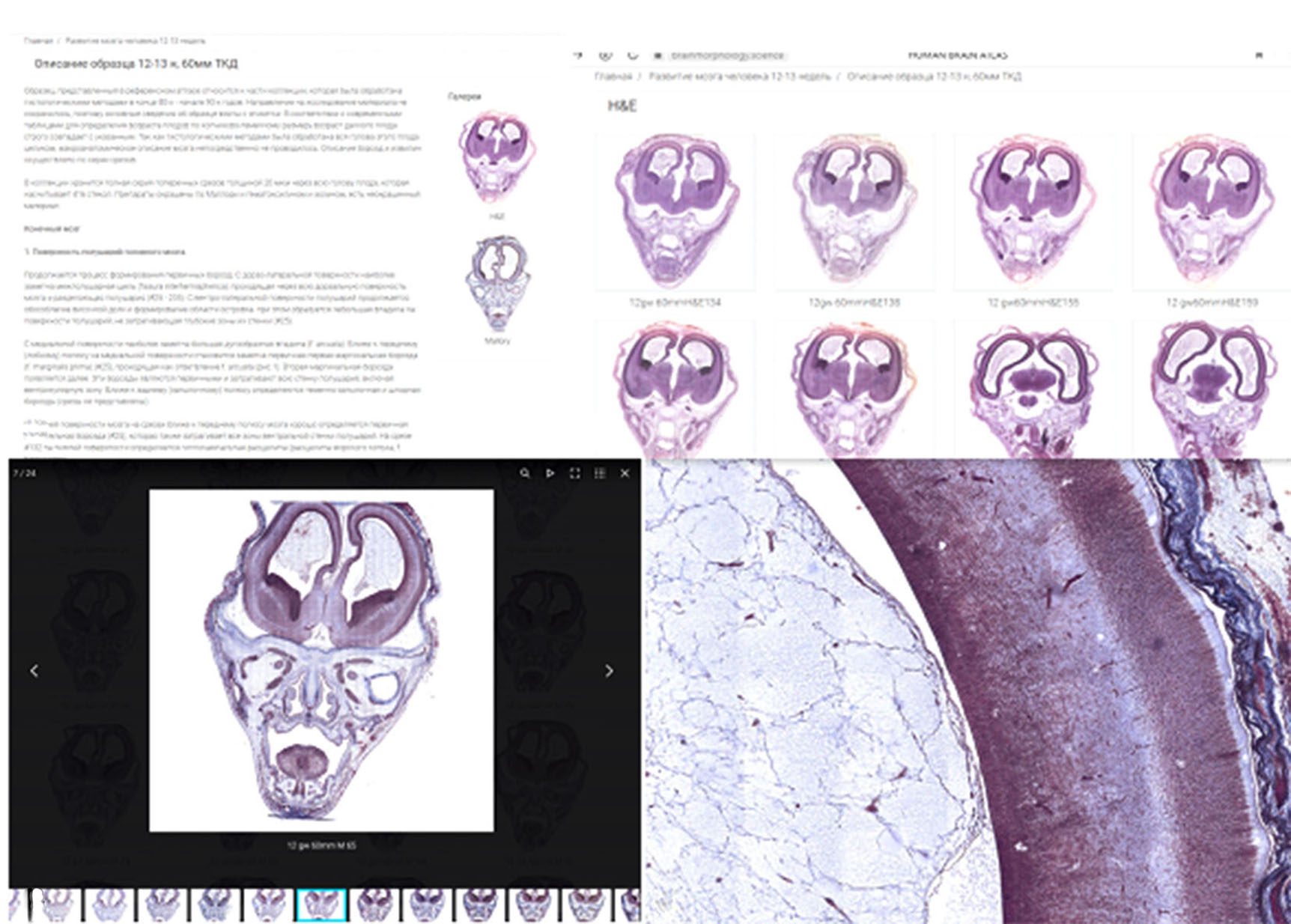 Таким образом, при исследовании аутопсийного материала с помощью гистологических и иммуногистохимических методов создаётся большое количество изображений, содержащих важную информацию о развитии головного мозга, которая не может быть представлена в традиционном формате публикаций и поэтому недоступна широкой научной и медицинской общественности: исследователям и врачам, работающим над проблемами нейрогенеза и патогенеза врождённых неврологических заболеваний. Благодаря современным технологиям визуализации, оцифровки и хранения данных этот обширный архив препаратов можно сделать доступным для широкого круга специалистов.