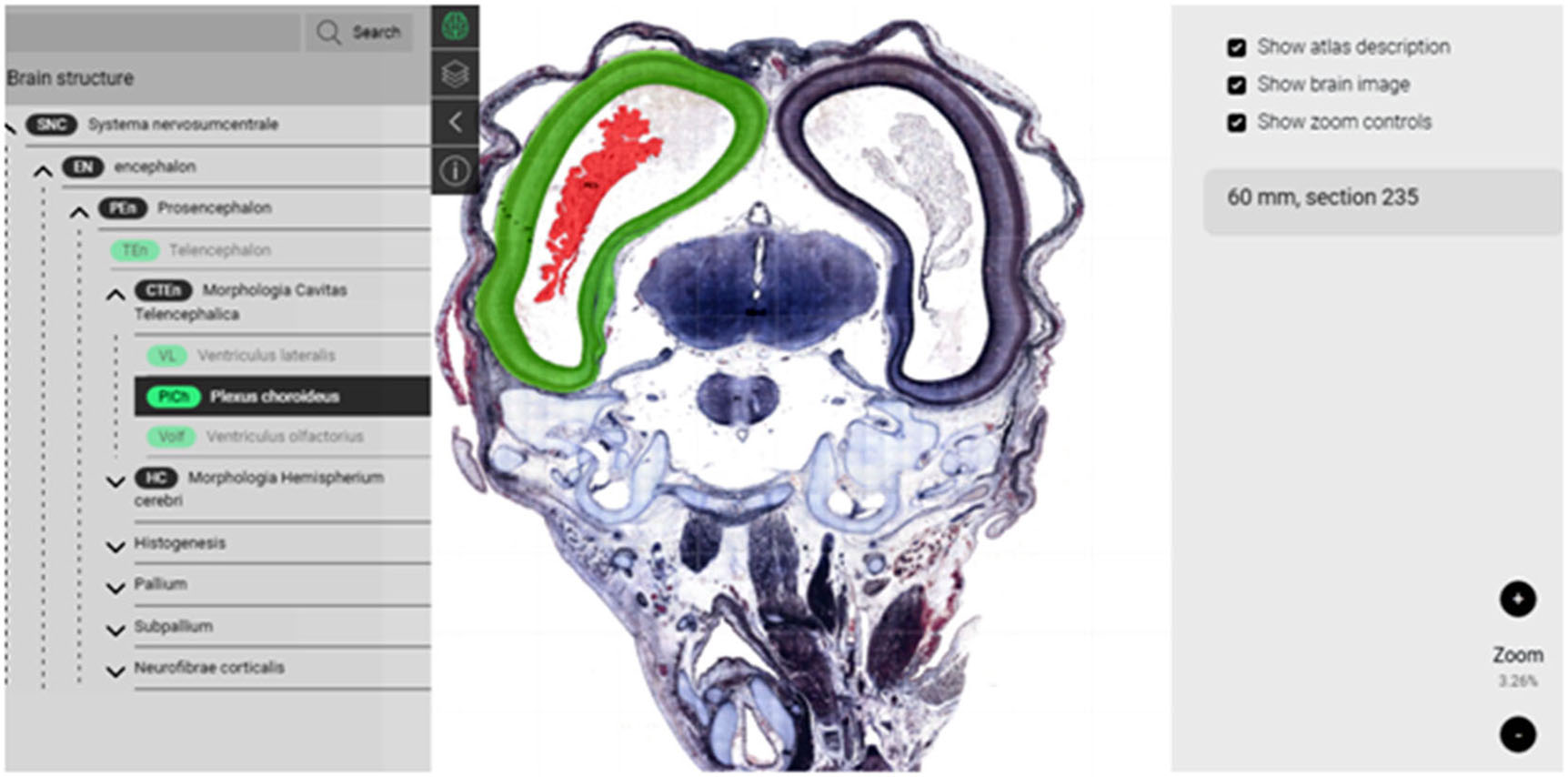 Fig. 3. Screenshot of the atlas page with the initial marking of the fetal section at 13 weeks of gestational development.
