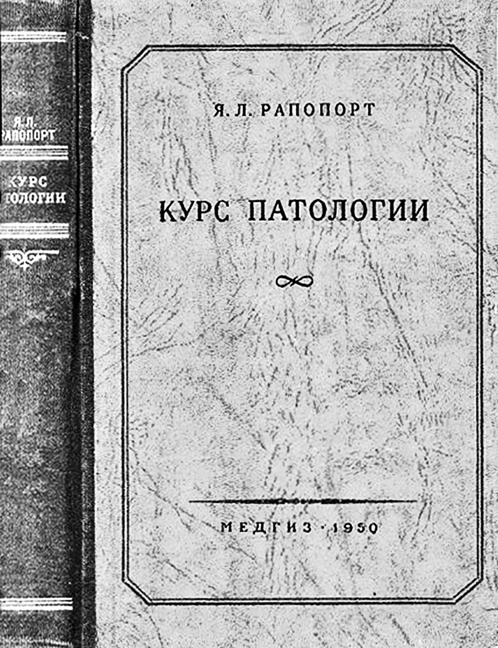 Яков Львович Рапопорт является автором 200 научных публикаций в отечественных и зарубежных изданиях, среди которых отдельного внимания заслуживает учебник для высших учебных заведений «Курс патологии», который по праву считается одним из самых информативных источников знаний по предмету. Он использовался в том числе и иностранными коллегами (рис. 3).