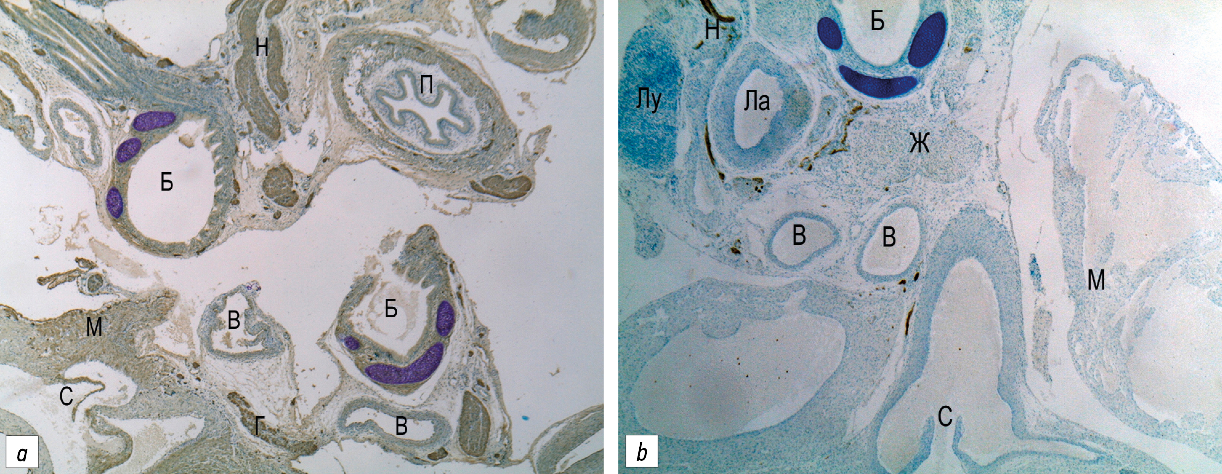 The study objects were the organs and tissues of the mediastinum of Wistar rats aged 1 day (P1) (n =10). When experimenting with animals, the international rules of the European Community for the humane treatment of experimental animals were observed. The study was approved by the Local Ethics Committee of the Institute of Experimental Medicine (Protocol No. 2/22 dated April 6, 2022).