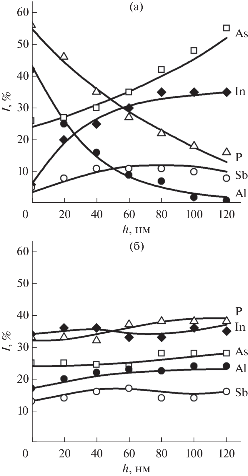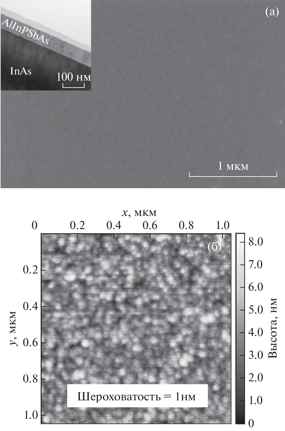 The results of growing of InAlPSbAs/InAs thin-layer heterostructures by the floating-zone recrystallization with a temperature gradient are discussed. In a model of regular solutions, an analysis of heterophase equilibria in the In–Al–P–Sb–As system is carried out. The growth kinetics is studied as a function of the thickness of the liquid phase (l), and the element concentrations, the substrate temperature (T), and the temperature gradient (G). The growth regimes are investigated and an analysis is carried out for spinodal decompositions of solid solutions. It is shown that the substrate temperature and the temperature gradient have a significant effect on the growth kinetics. Auger electron spectroscopy is used to study the elemental depth profiles of the InAlPSbAs solid solution and show the advantages from liquid phase replenishment to obtain layers of constant composition. The structural perfection of InAlPSbAs solid solutions on an InAs substrate is studied. It is established that the best structural perfection of the layers is achieved at T < 873 K, G < 20 K/cm, and liquid zone thickness 80 < l < 120 µm. The surface morphology of InAlPSbAs solid solutions on InAs has been studied by scanning probe microscopy. It is shown that at T < 873 K, G < 20 K/cm, and liquid zone thickness 80 < l < 120 µm the root-mean-square surface roughness does not exceed 1 nm.